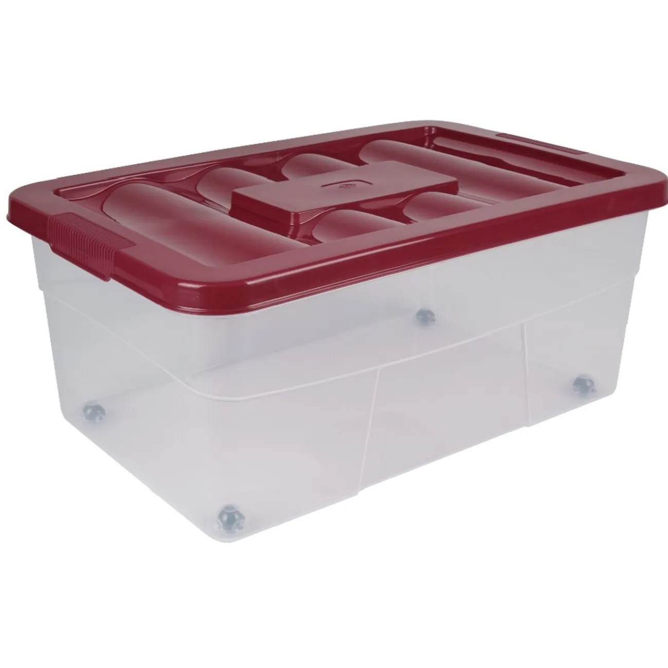 Avec roulettes pour un déplacement facilitéCe produit existe en 4 coloris, coloris aléatoire selon disponibilité en magasin.- Couleur : Boîte transparente avec couvercle bleu, blanc, rose ou violet – Dimensions :60 L x 40P x 25 H cm- Matière(s) :Polypropylène