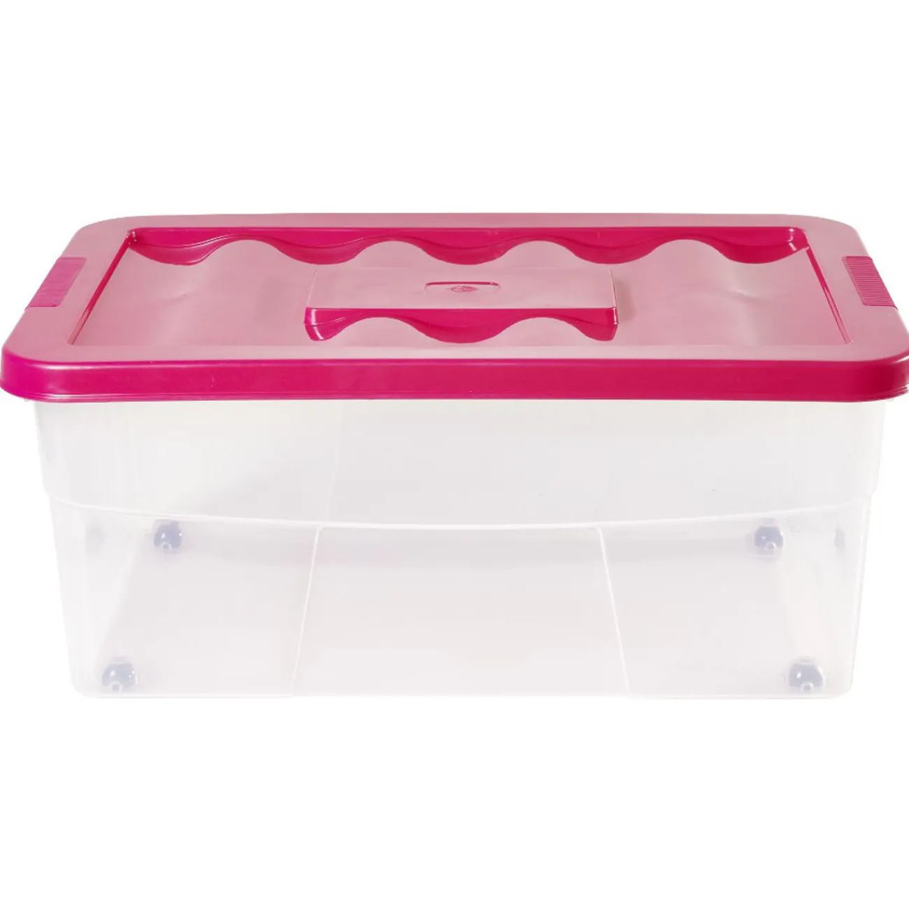 Optimisez votre rangement grâce à cette boîte transparente sur 4 roulettes avec couvercle.