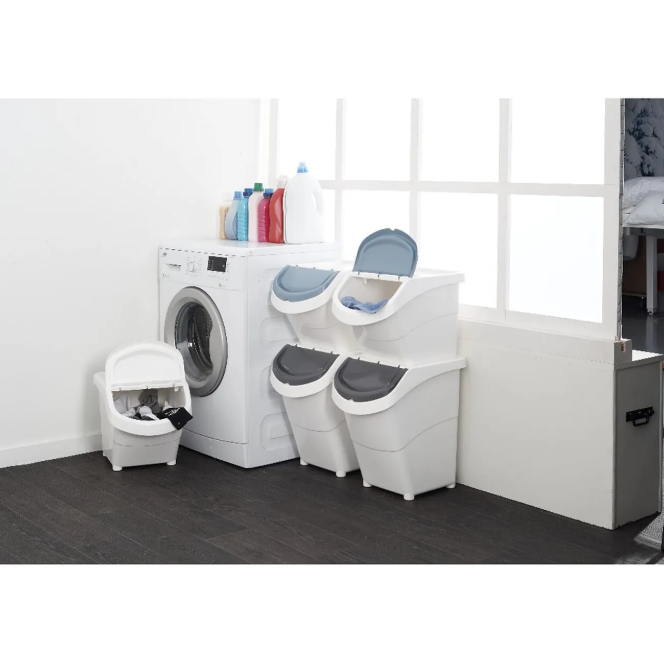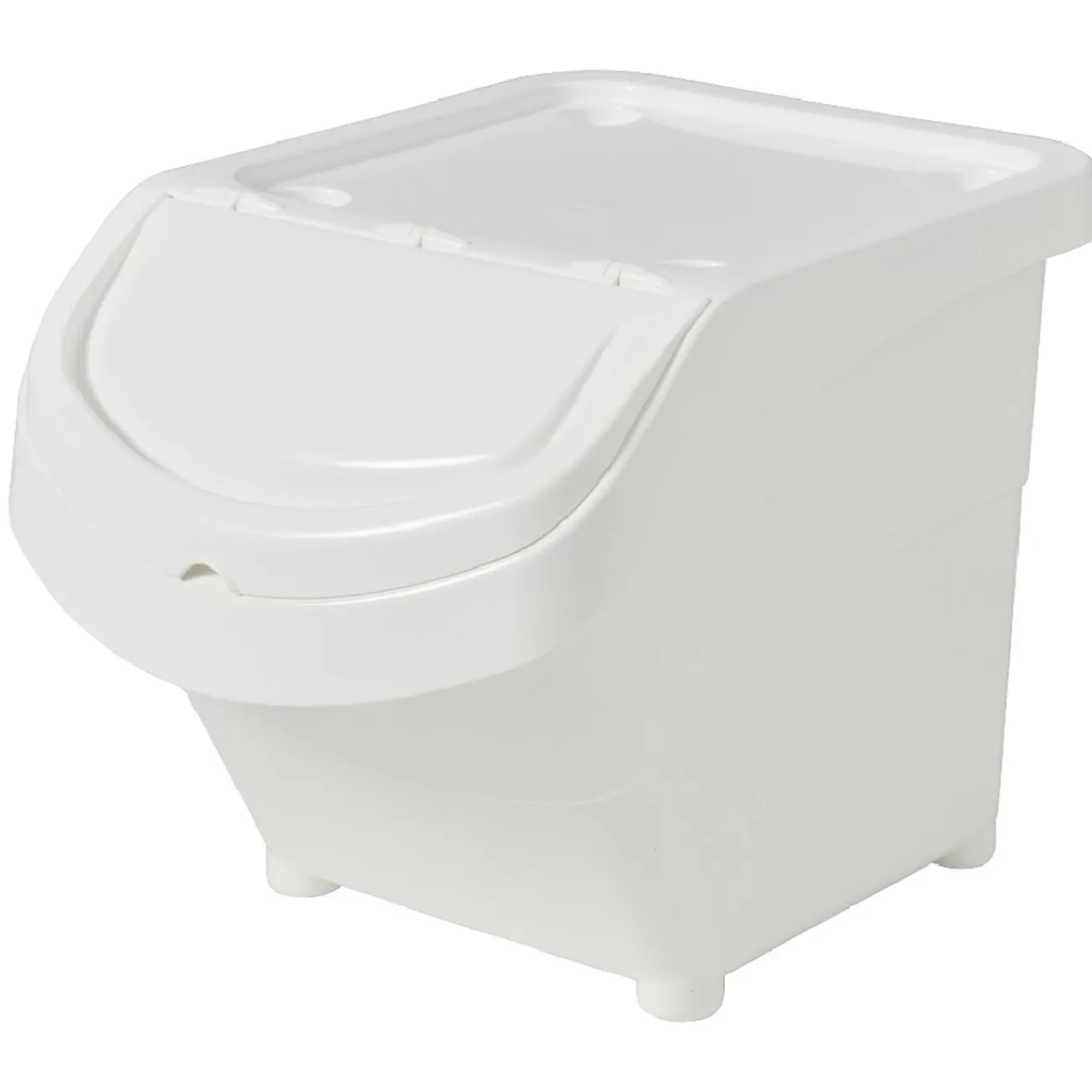 Boîte de rangement blanche d’une contenance de 20 litres avec couvercle et 6 stickers inclus.