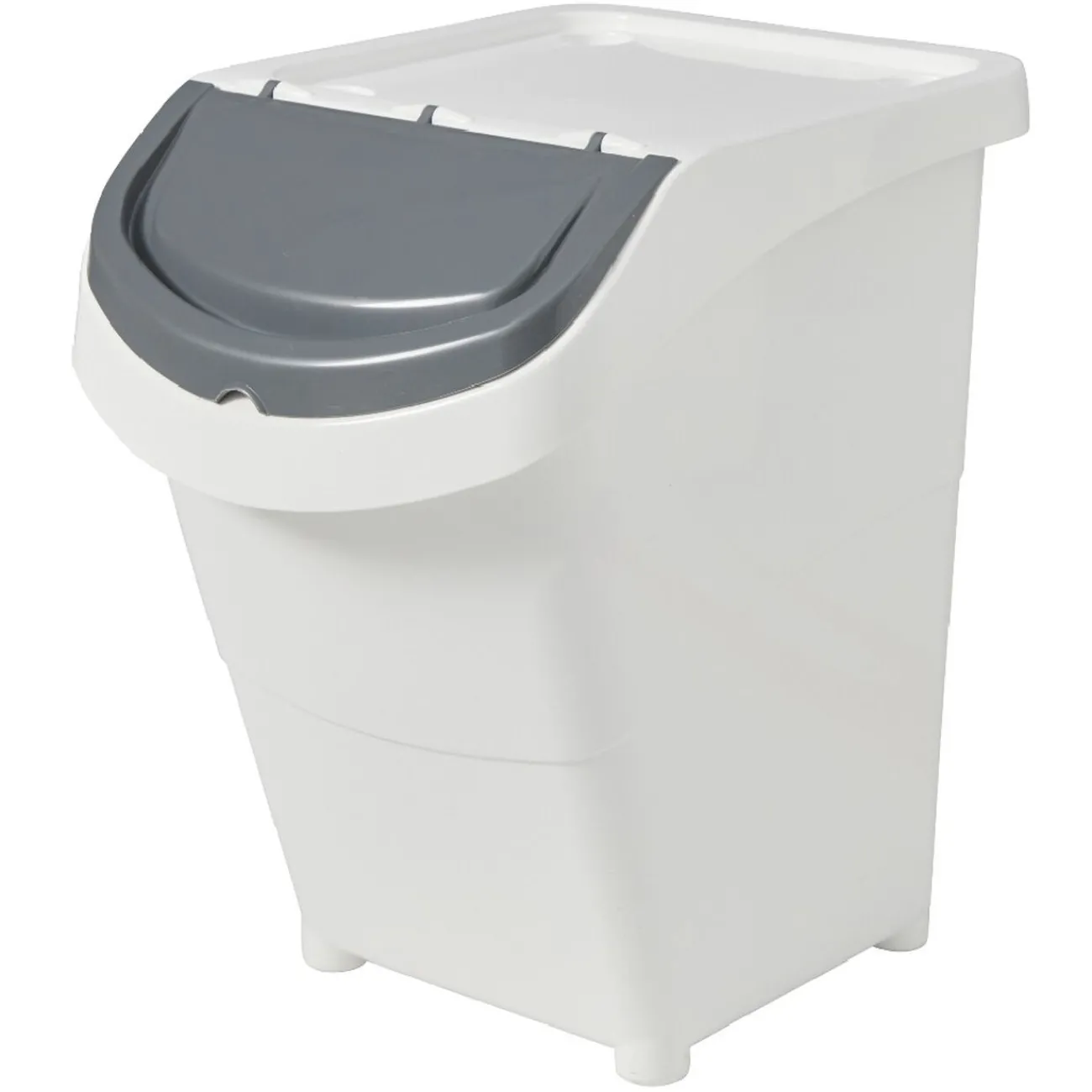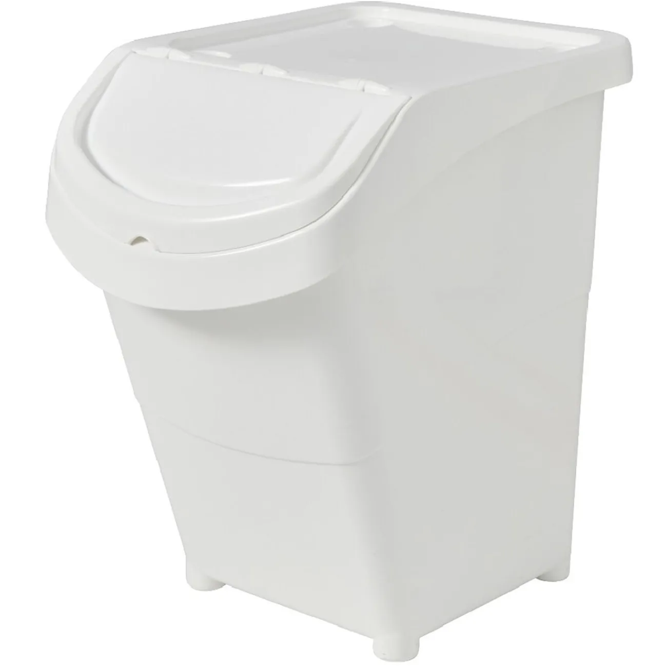 Boîte de rangement blanche d’une contenance de 40 litres avec couvercle et 6 stickers inclus.