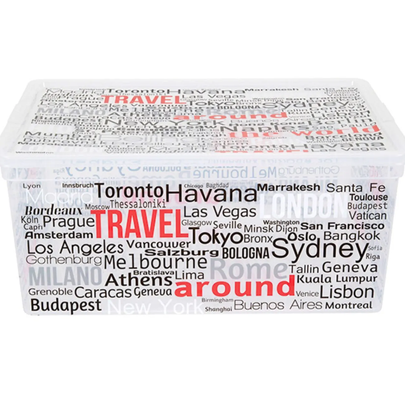Boîte de rangement design noms de villes, dim. 40x34x17 cm, plastique.