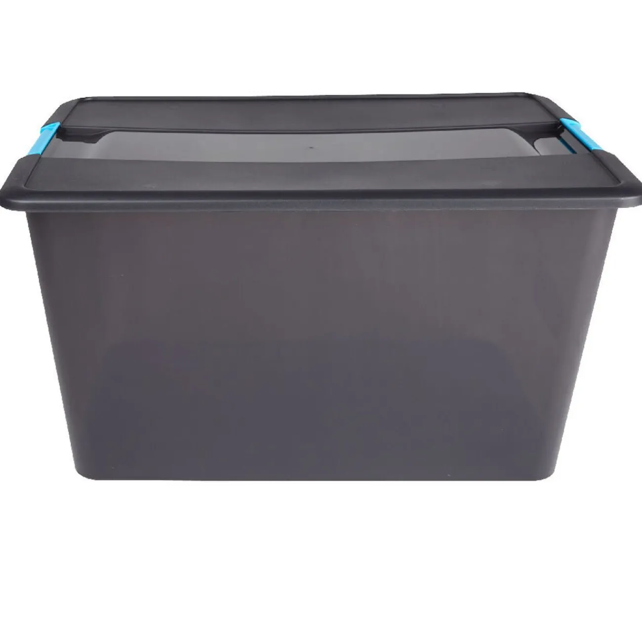 Gifi Rangement|Boîte de rangement Kliker avec couvercle à clips fumé 48 L