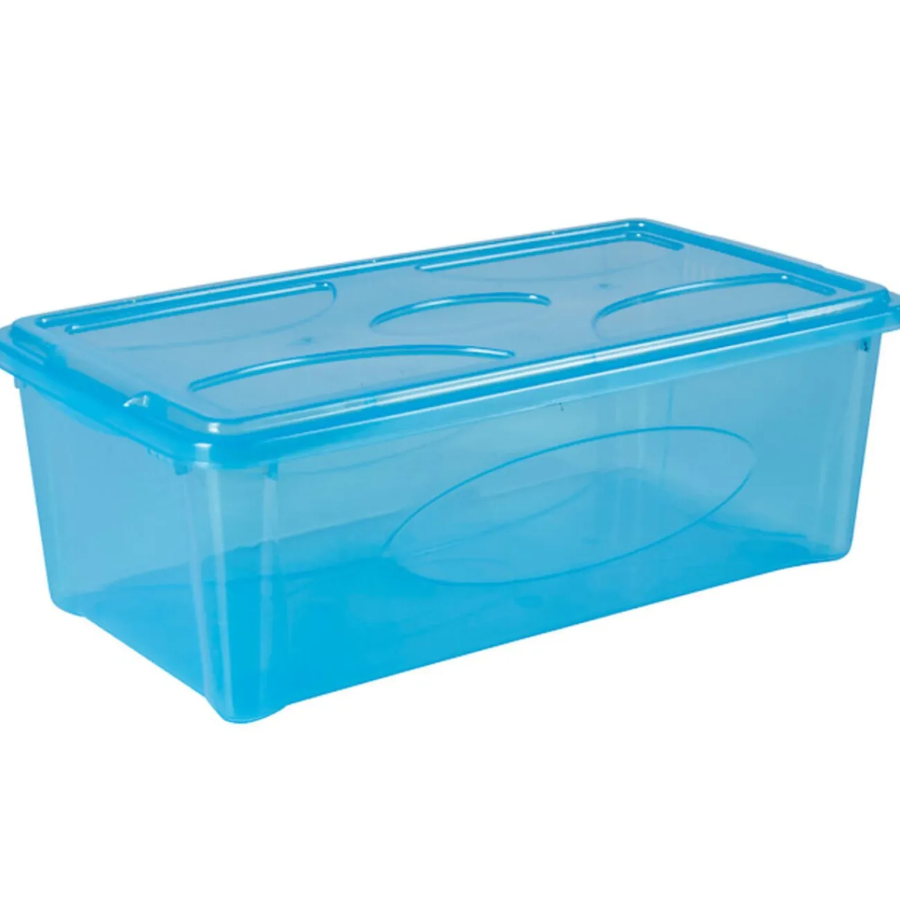 Box de rangement transparent avec couvercle bleu 5 L, dim. 35×19,5xh.12,5 cm, polypropylène.