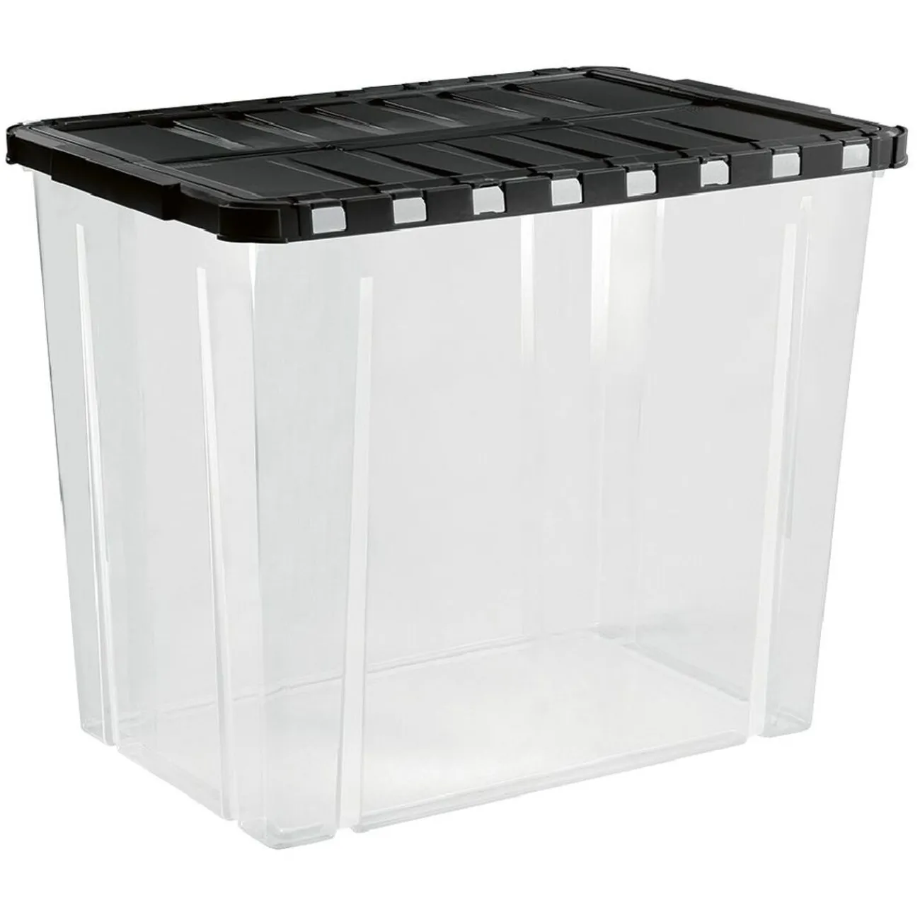 Optez pour ce box de rangement transparent avec couvercle noir à ouverture papillon !