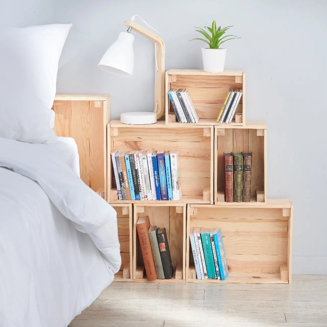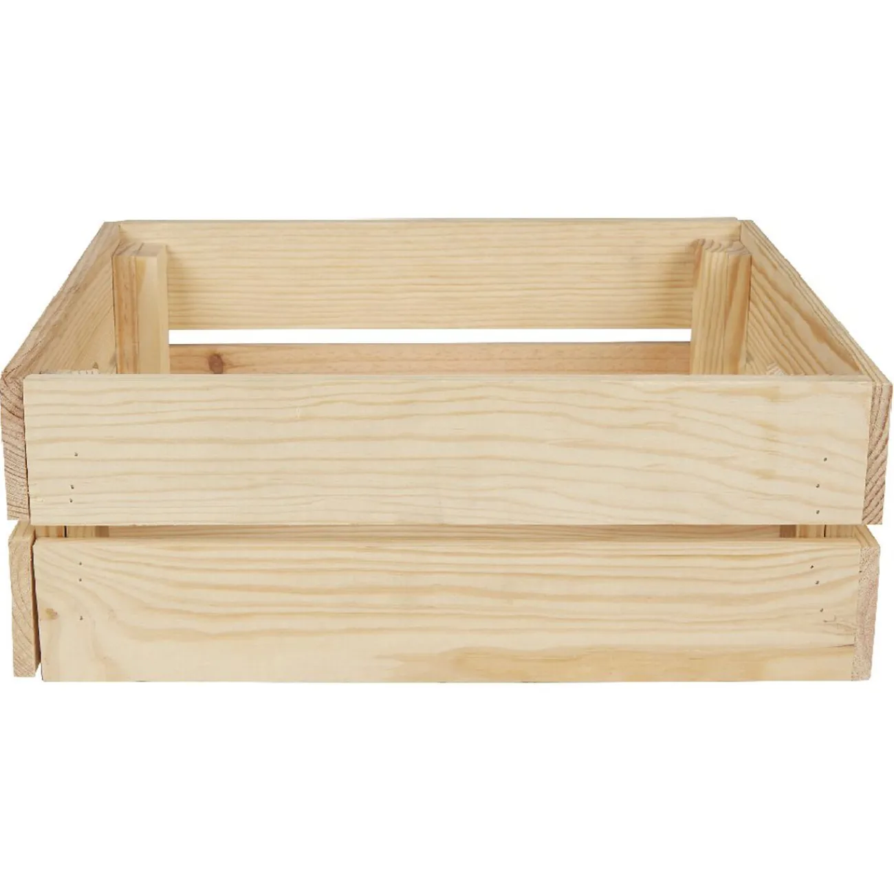 Caisse rectangulaire en pin massif avec emplacement poignée sur deux côtés, à monter soi-même.