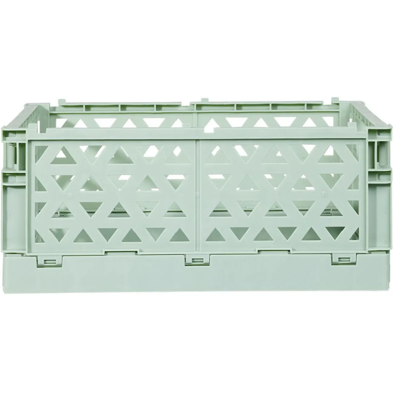 Caisse pliable, empilable et coulissante de couleur verte, avec un porte-étiquette pour mieux les distinguer. Parfaite pour optimiser votre rangement.