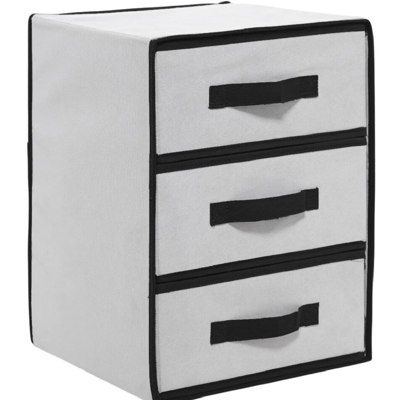 Casier de rangement à 3 tiroirs de couleur blanc et noir.