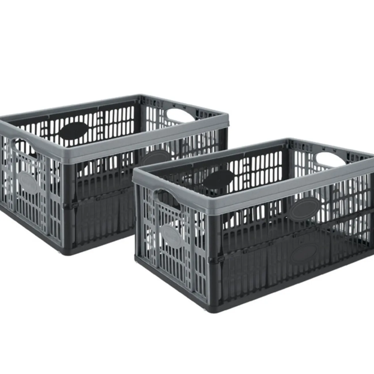 2 casiers de rangement pliant 32 L gris/noir, dim. 48x35x8,5 cm, plastique.