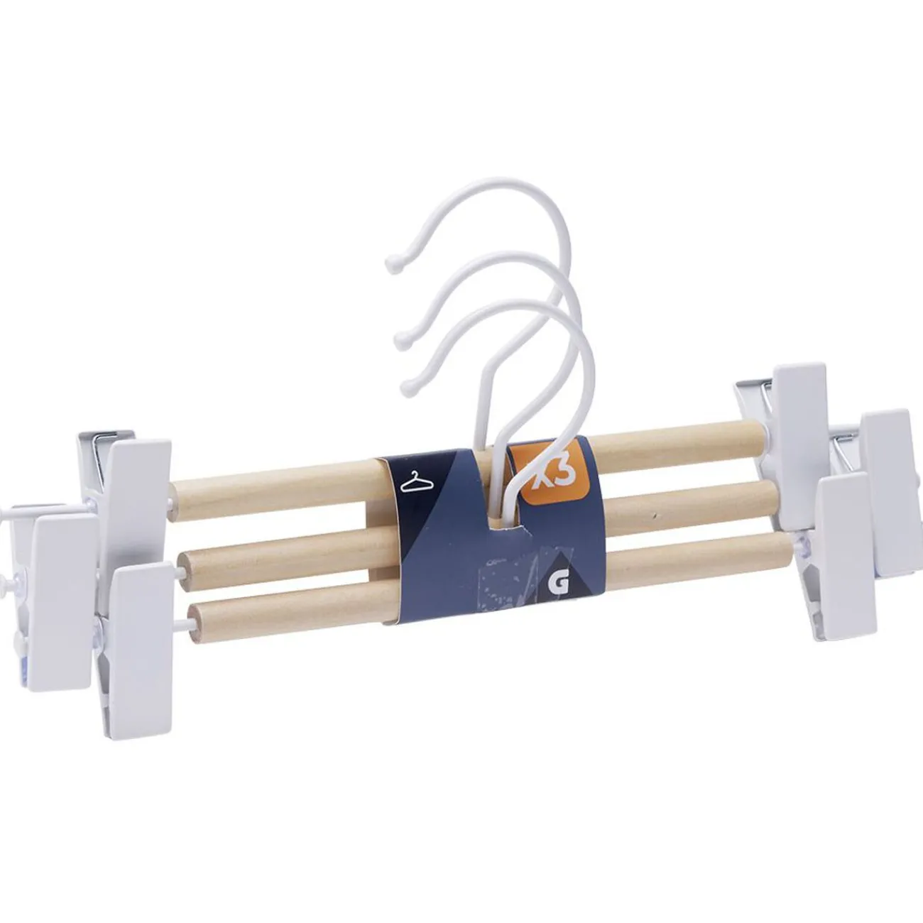 Notre lot de 3 cintres à pinces sera idéal pour accrocher facilement pantalons, jupes, shorts et autres vêtements.
