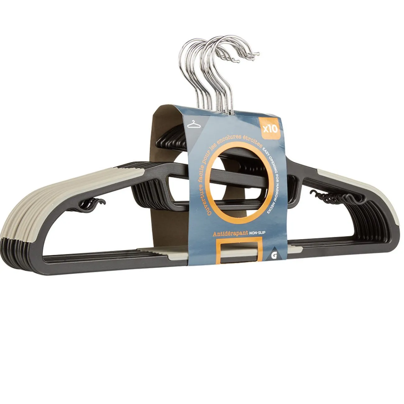 Lot de 10 cintres antidérapants avec ouverture facile pour les encolures étroites.