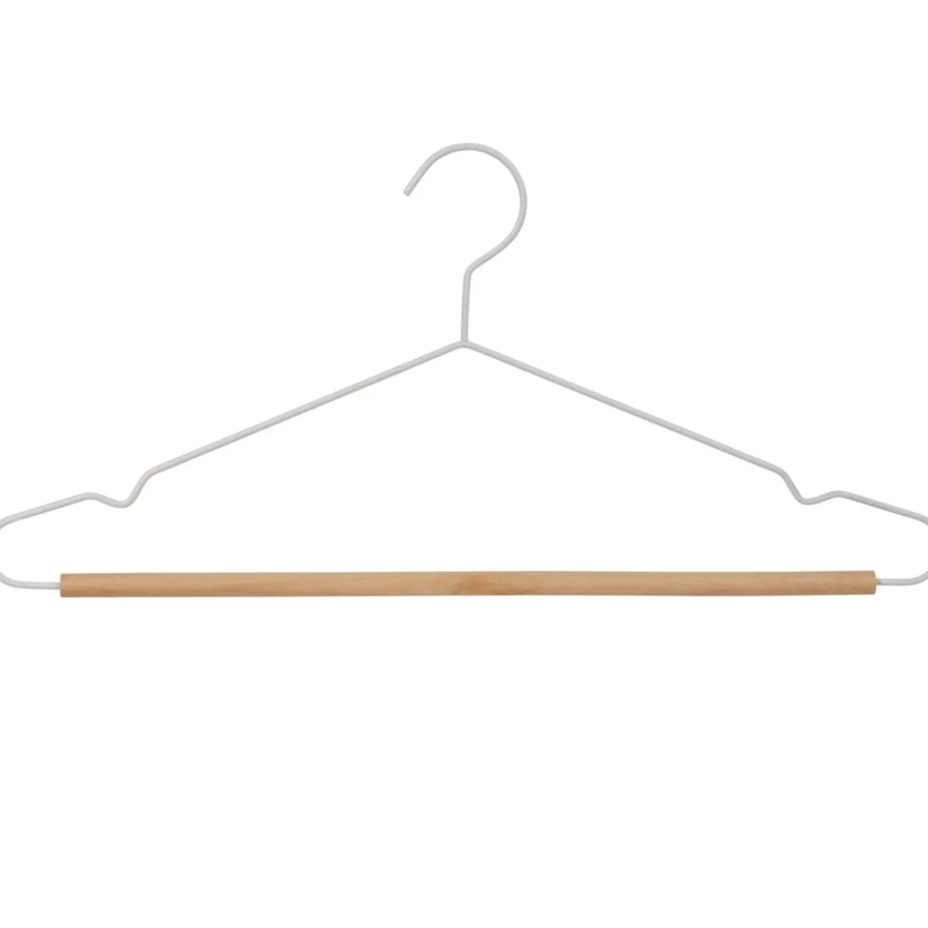 Apportez de l’élégance à votre dressing avec ce lot de 3 cintres blanc ornés d’une baguette en bois. Cette dernière vous permettra de suspendre vos pantalons sans les froisser.