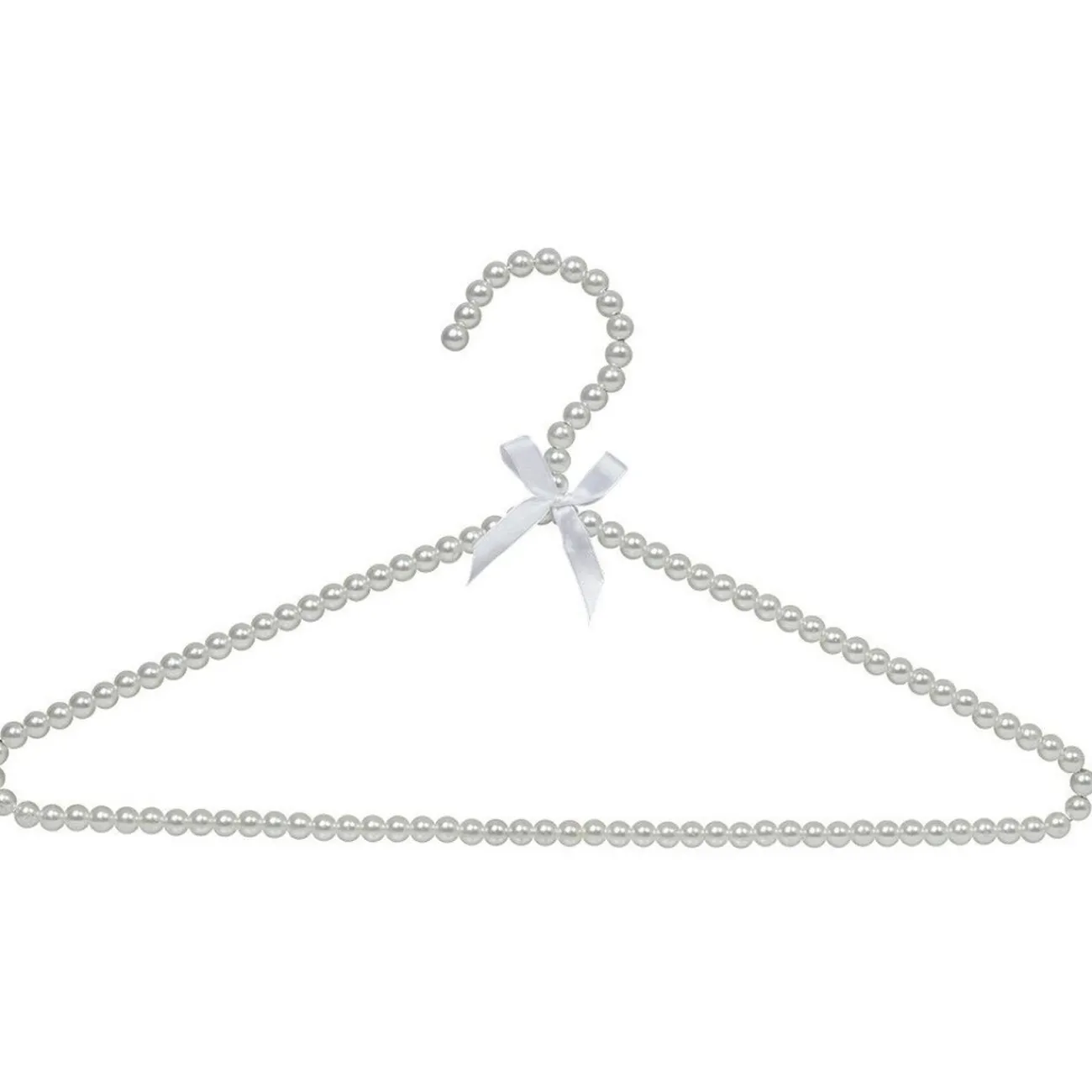 Décorez votre dressing à l’aide de ce lot de 2 cintres recouverts de perles blanches et d’un petit noeud.