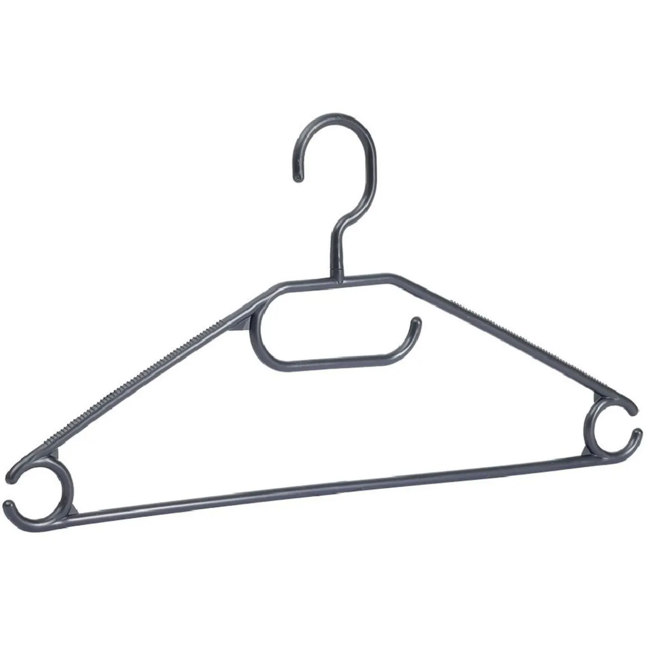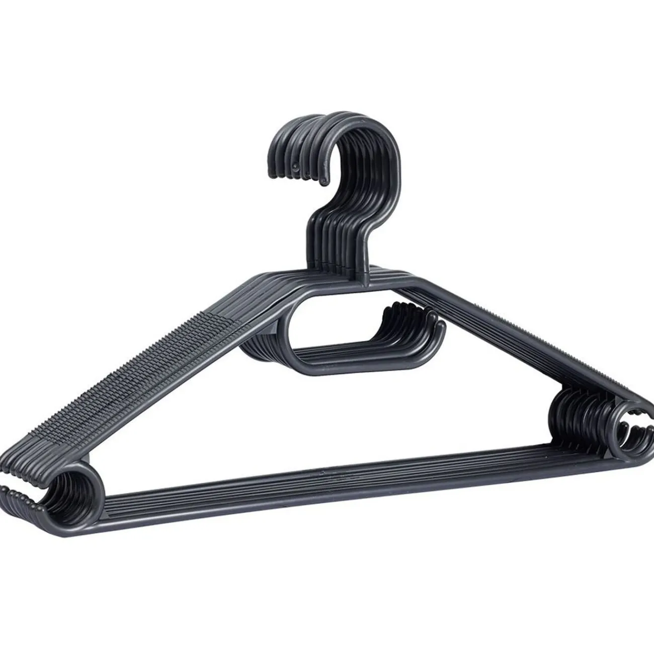 Lot de 8 cintres en plastique noir.