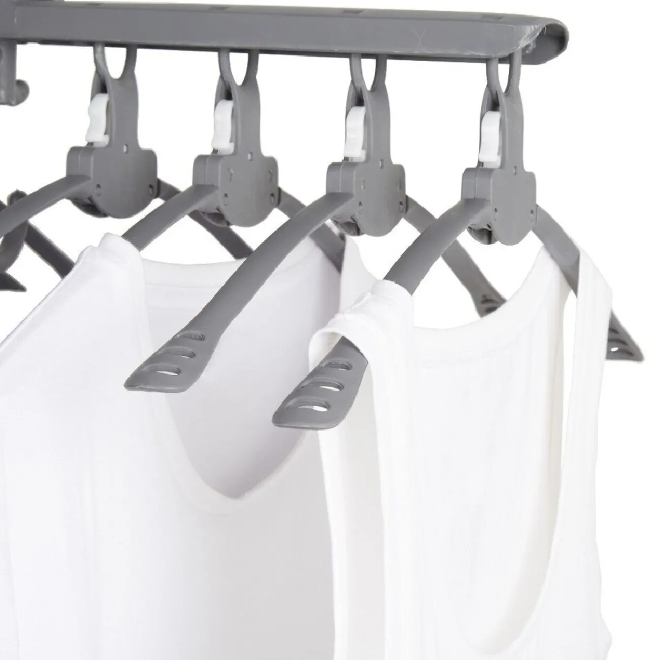 Ce produit existe en 2 couleurs: Blanc/Gris, couleurs aléatoires selon disponibilite en magasin. – Dimensions: l 52 x h 23,5 x L 42 cm. Capacité : 8 cintres – Matière: Polypropylène.