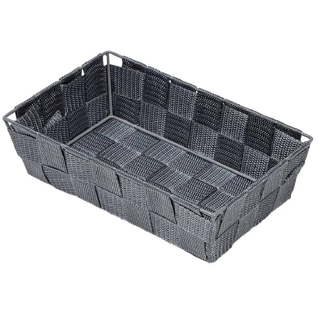 Corbeille en tissu synthétique façon osier tressé de forme rectangulaire pour apporter un côté naturel à votre espace de vie.
