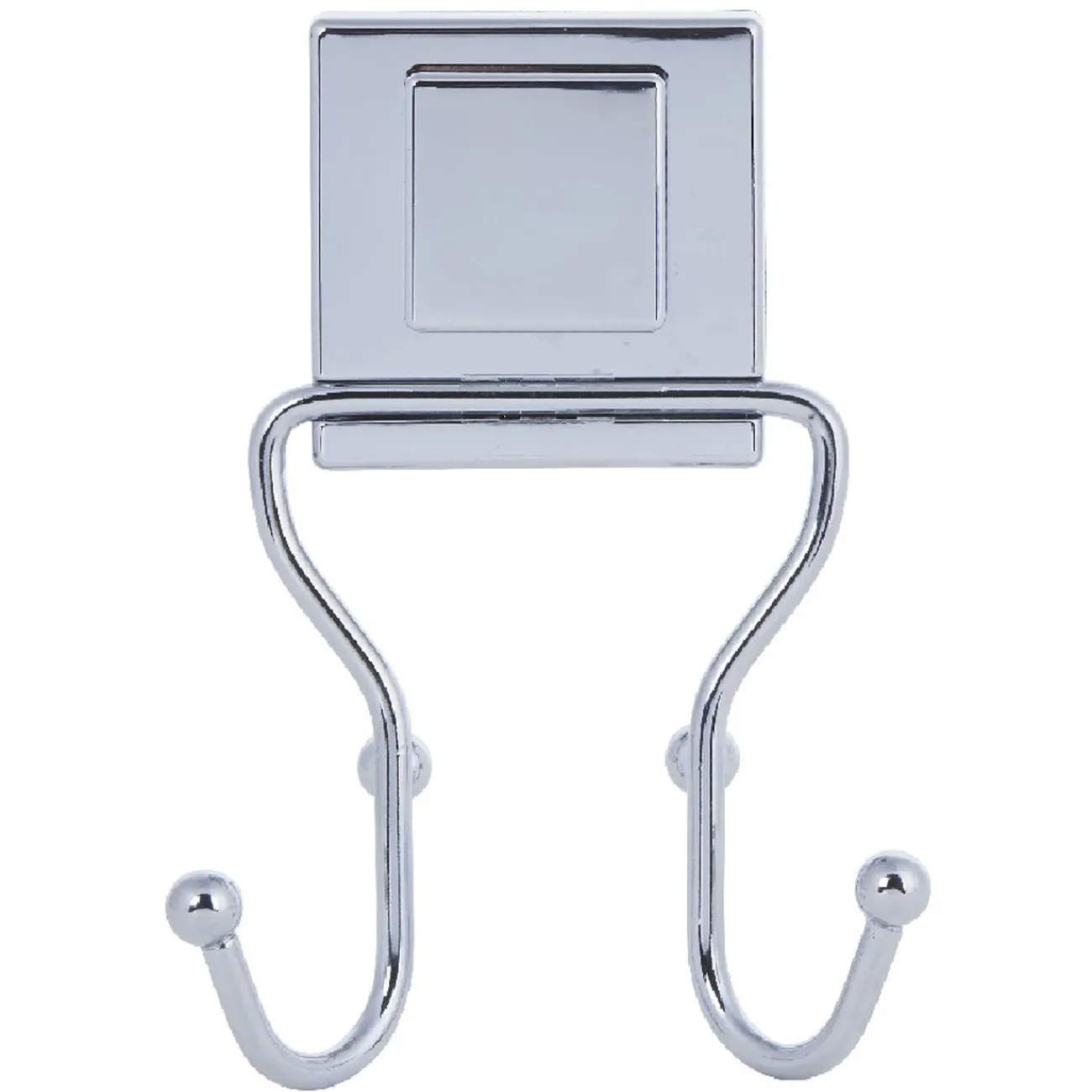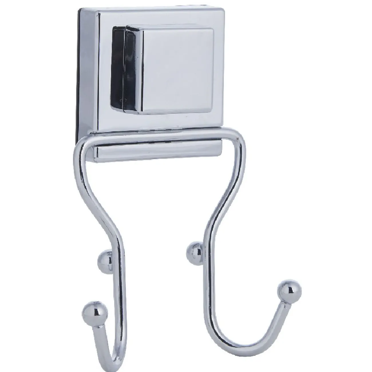 Optez pour ce double crochet à ventouse en métal gris pour suspendre serviettes, gants et autres accessoires de toilette dans la salle de bain.