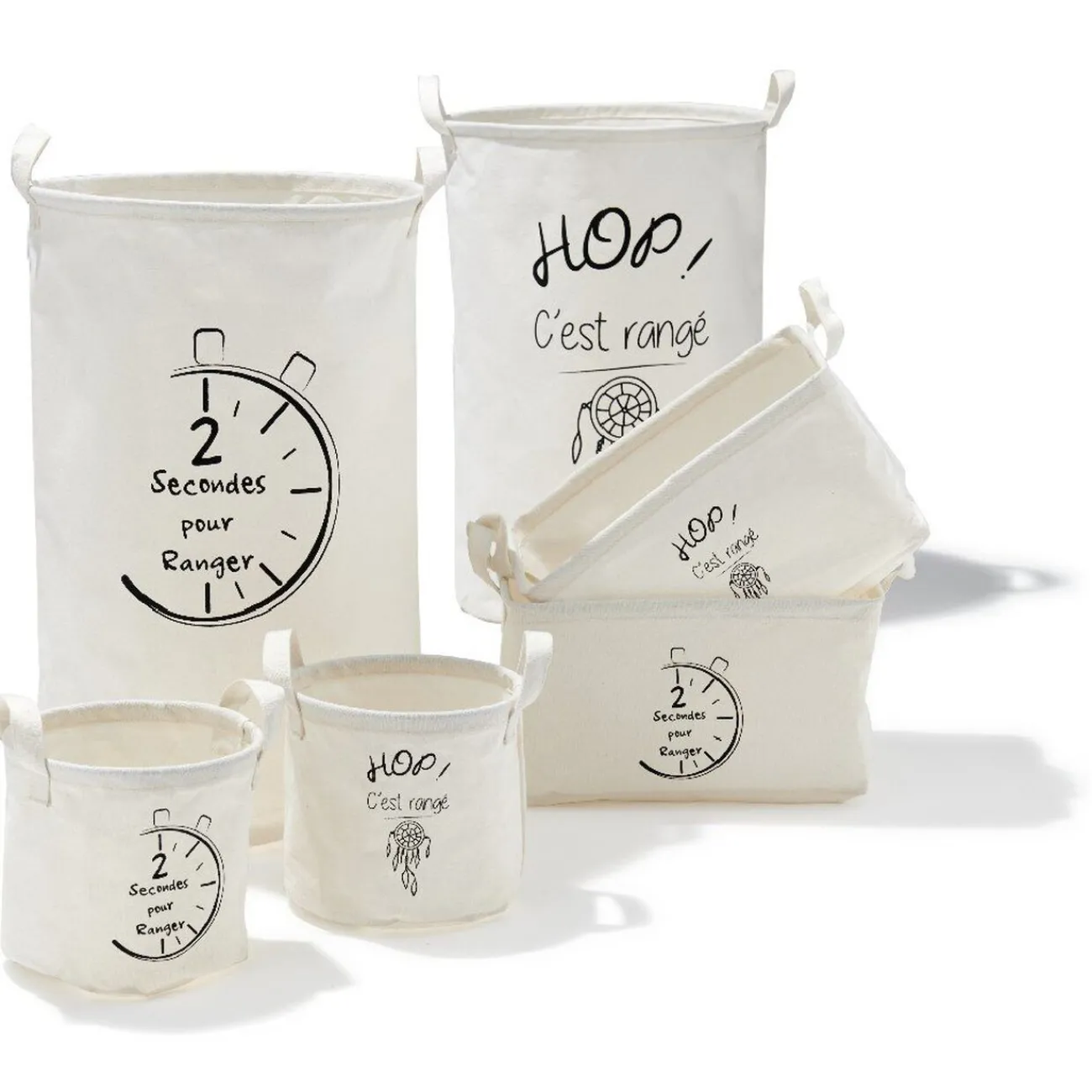 Idéale dans la salle de bain, cette grande panière pourra servir à ranger les serviettes en attendant de faire une machine. Existe en 2 modèles : « Hop ! C’est rangé » ou « 2 secondes pour ranger », disponibilité selon arrivage.
