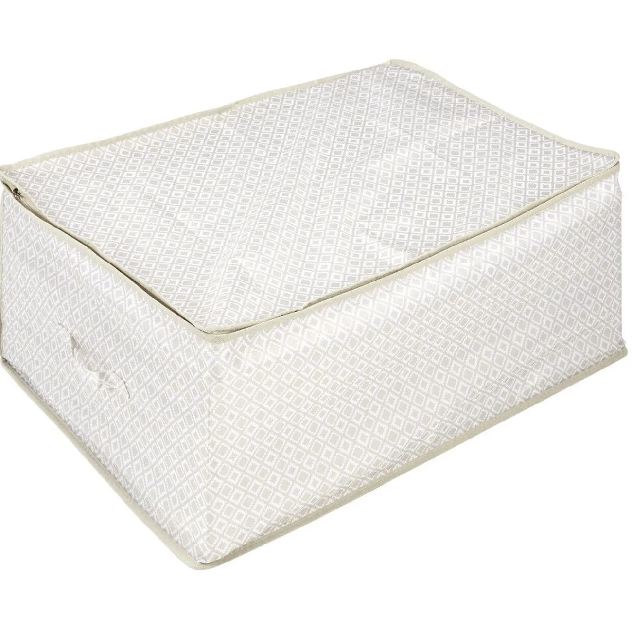Stockez et protégez vos vêtements ou autres affaires grâce à cette housse de rangement rectangulaire avec motifs triangles beiges et blancs.