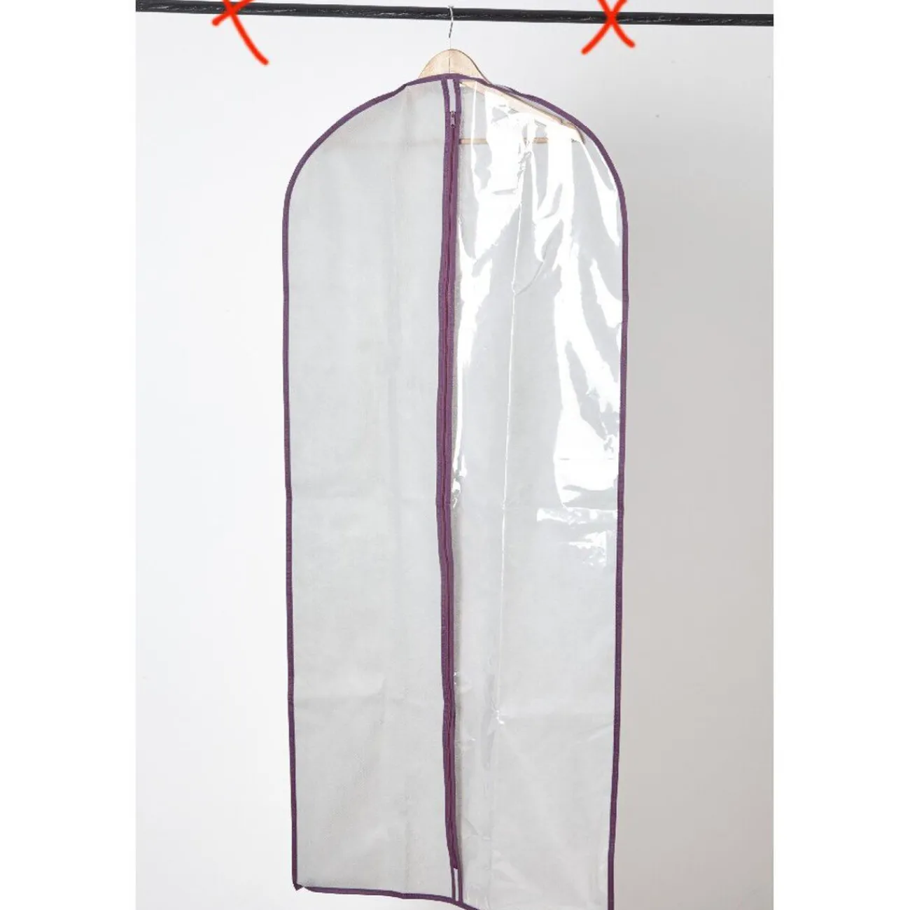 Housse protège vêtements, dim. 60xh.100 cm, polyéthylène et polypropylène . Coloris gris et violet.