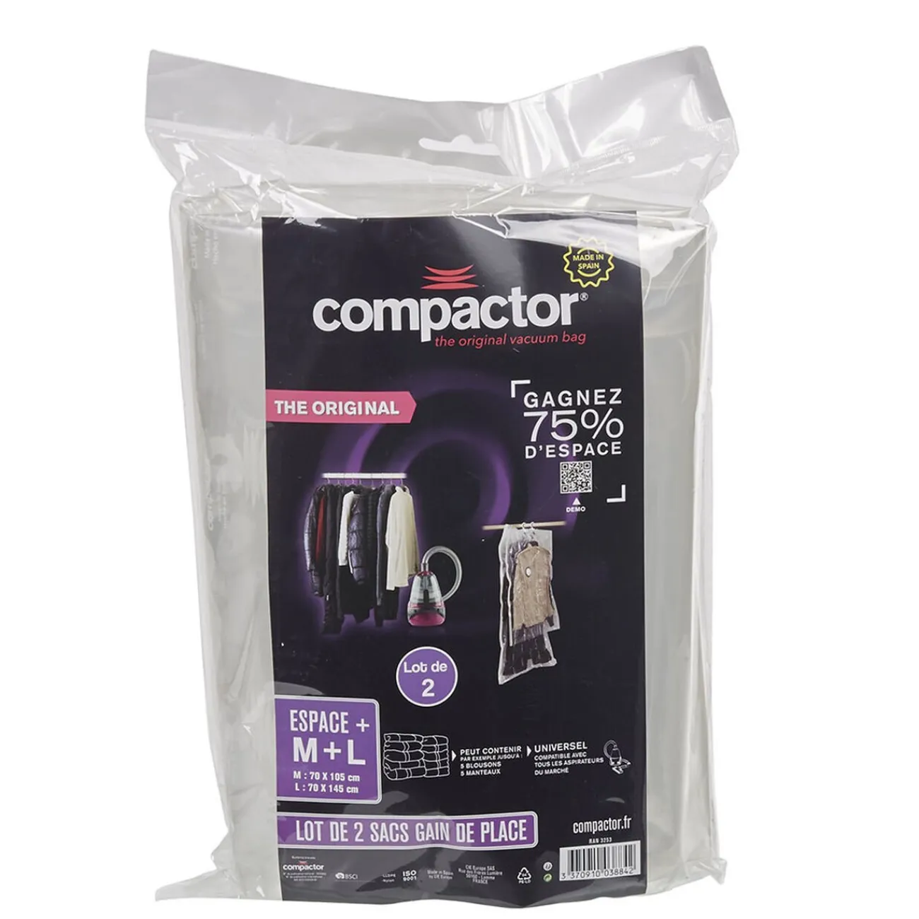Gagnez 75 % espace de rangement chez vous en les utilisant avec un aspirateur. Grâce à ce lot de 2 grandes housse vide air, une taille M et une taille L, stockez toutes vos affaires à l’abri de l’humidité et de la poussière.