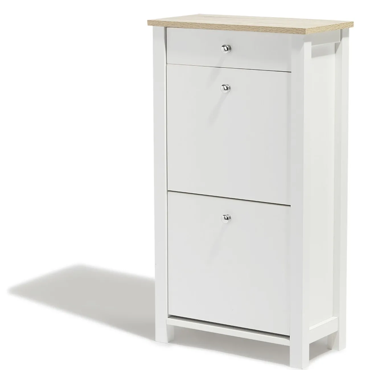 Si vous êtes fan des décorations qui sentent bon le grand air, alors vous allez craquer pour le meuble à chaussures Bristol ! Sa structure en panneau de particules revêtue en papier décor est à la fois responsable de son style vacances et détente et de sa stabilité remarquable. Le meuble à chaussures Bristol est capable de contenir jusqu’à 6 paires de chaussures dans son assortiment de trois tiroirs et de deux portes. Son design relaxant et épuré convient parfaitement à des compositions style grand air qui vous font respirer avec des lignes simples et des couleurs lumineuses et vivifiantes. Pour le même style, allez voir la console de la gamme Bristol !