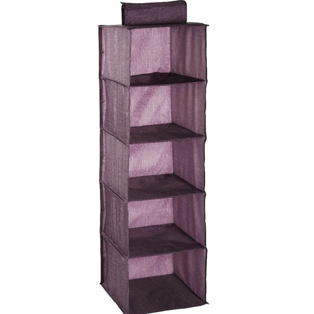 Organiseur de vêtements 5 niveaux violet, dim. 28x28x90 cm, polyester et carton.