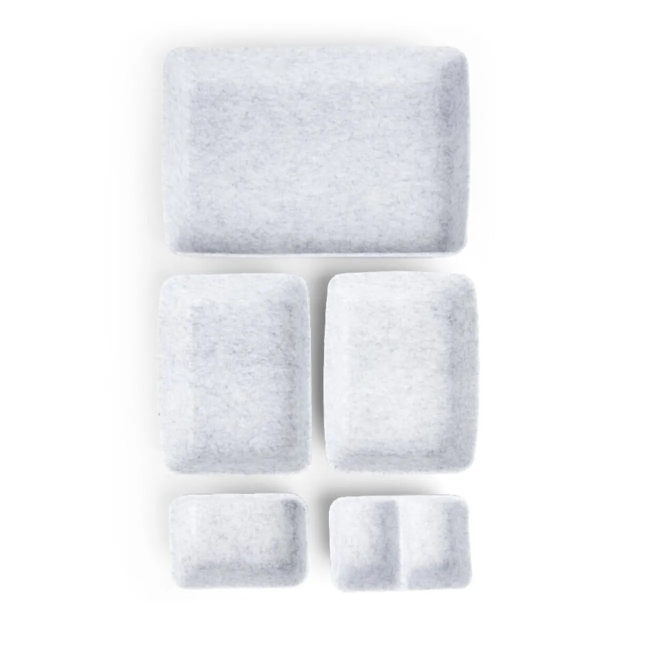 Conçue en feutrine douce, ces panières allient fonctionnalité et design moderne. La texture en feutrine offre une apparence chic et un toucher agréable pour accueillir divers objets et accessoires. Ce lot est composé de 5 tailles différentes.