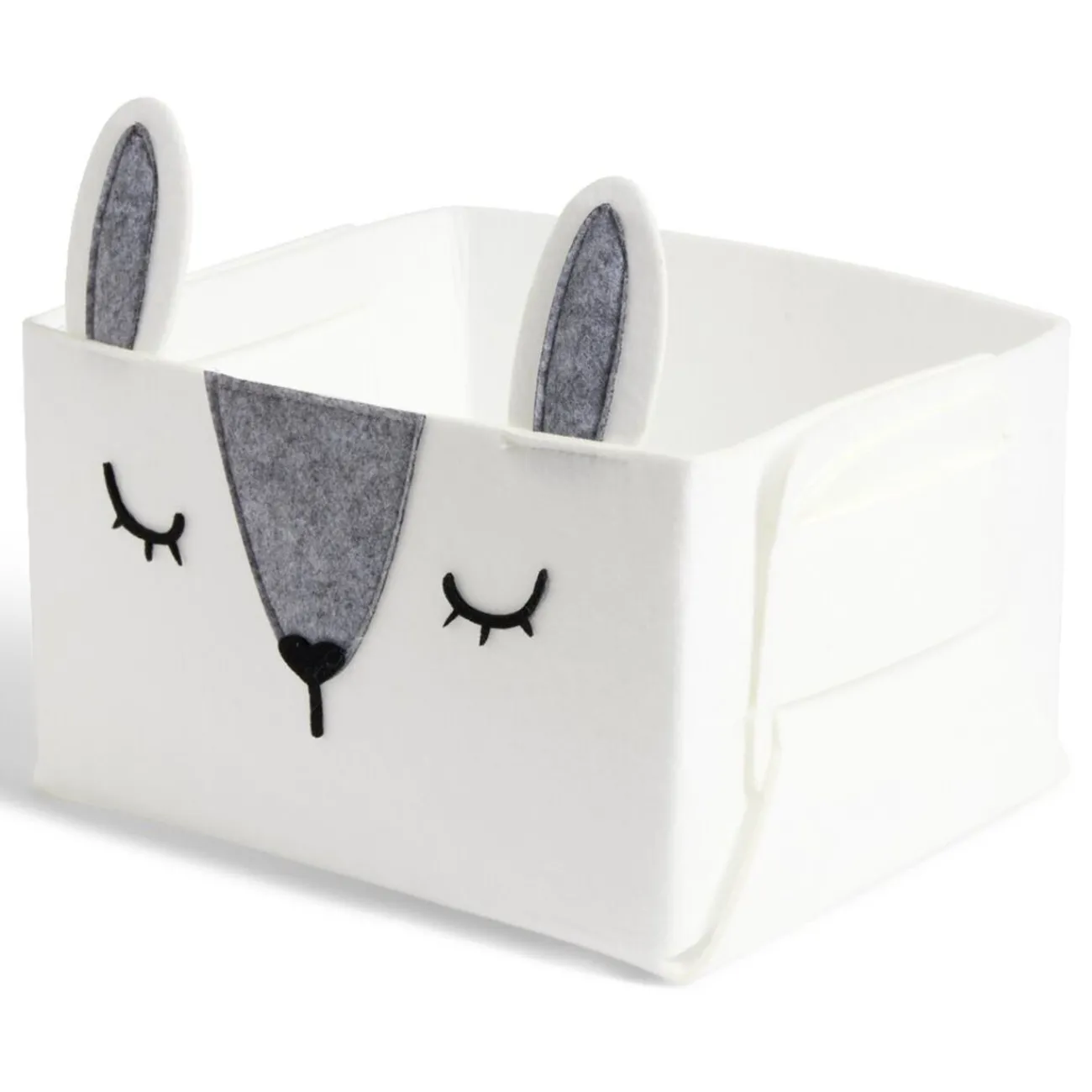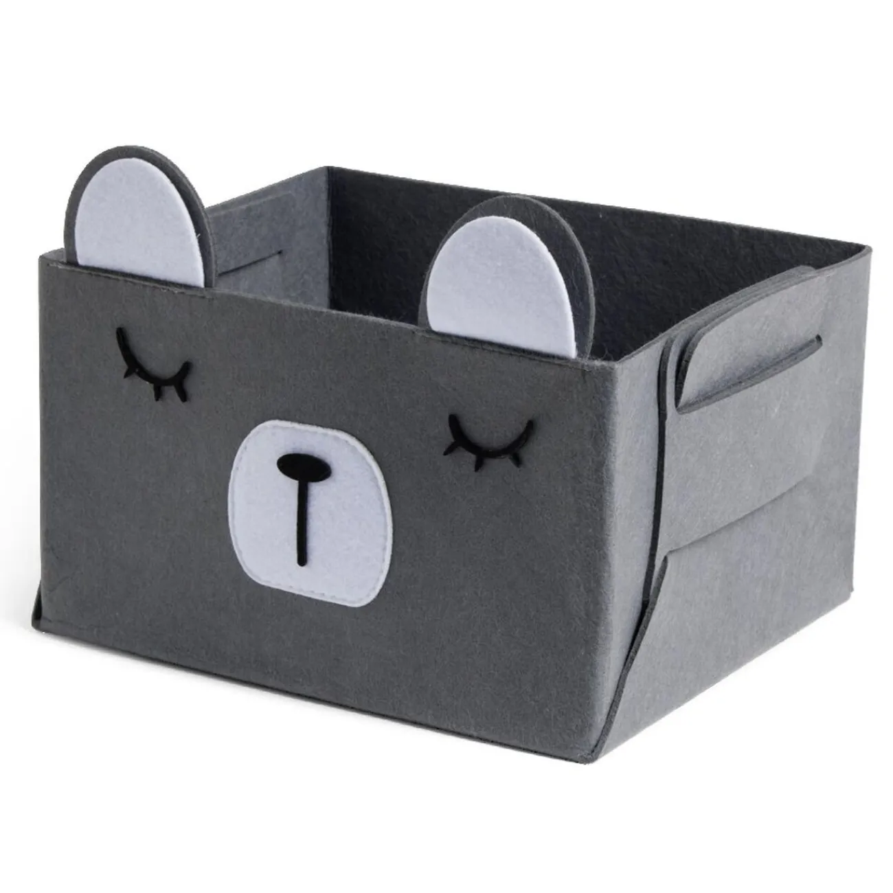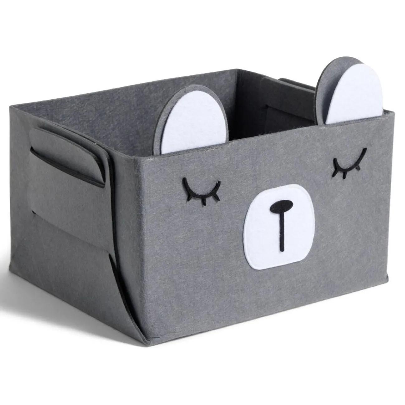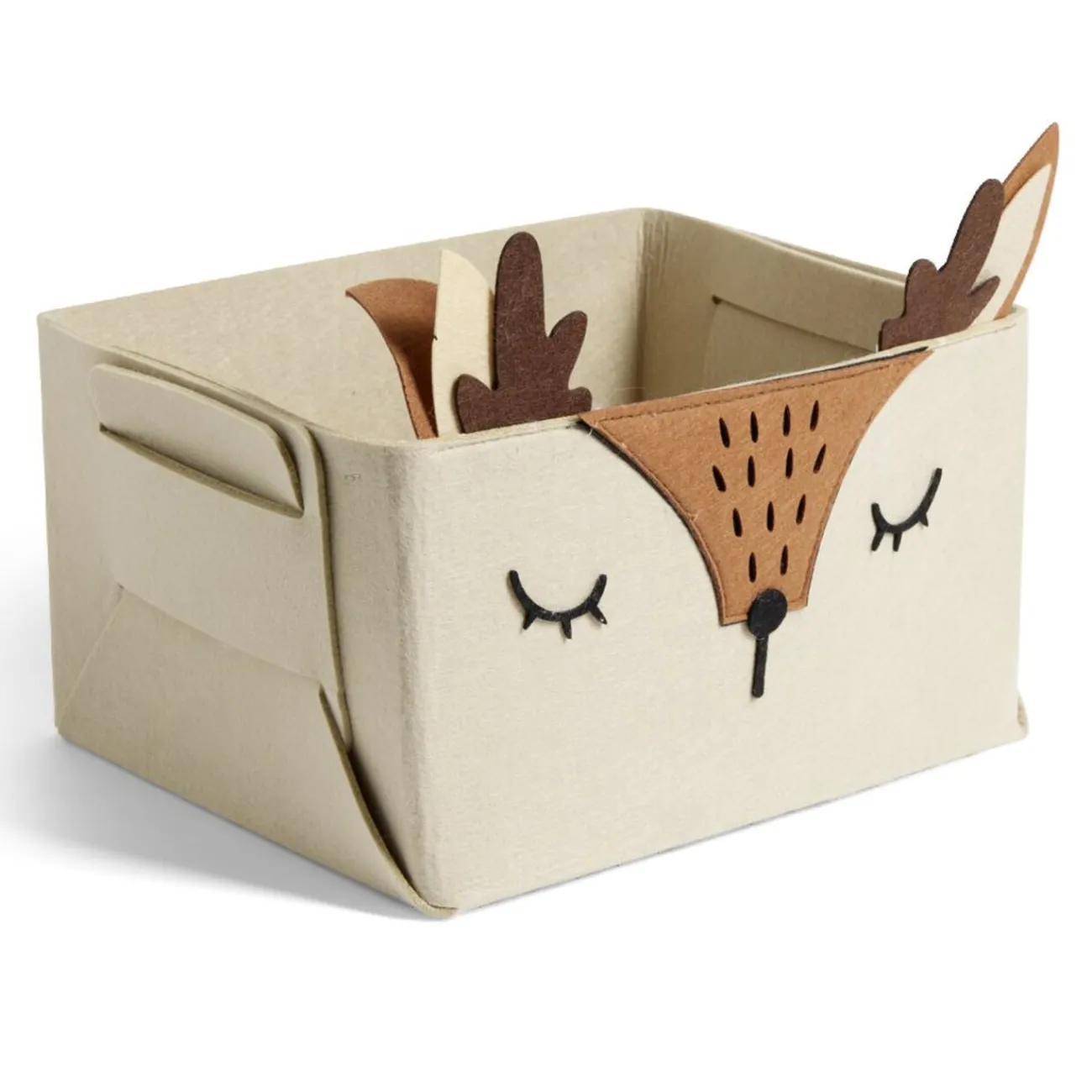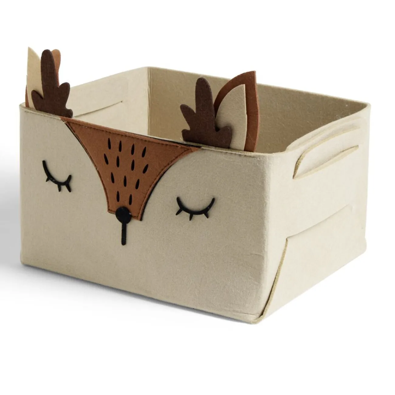 Cette panière de rangement pour enfants en feutrine, ornée de motifs d’animaux ludiques, est idéale pour organiser les jouets, livres et autres trésors des petits.