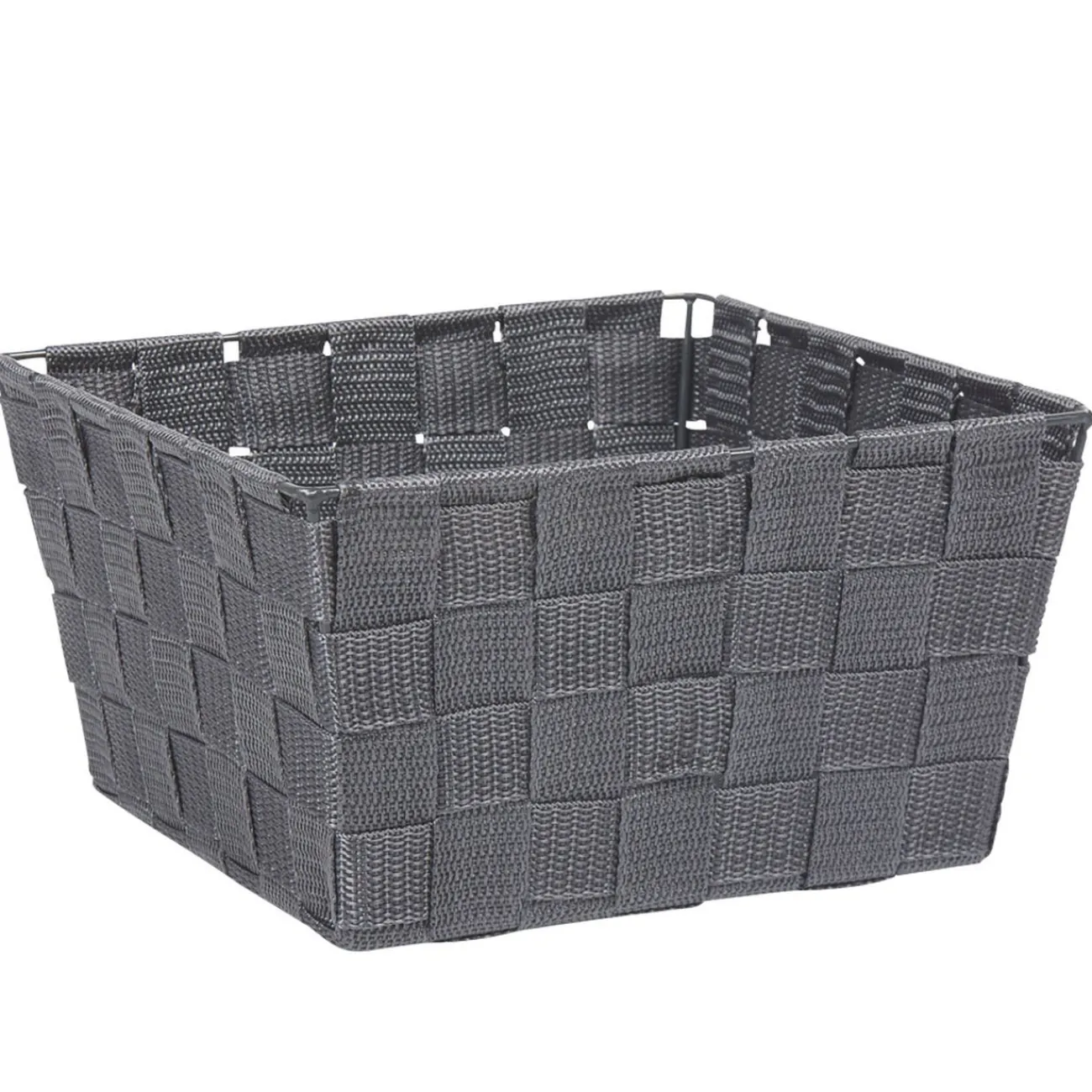 Panière de rangement grise foncé tressée, taille L, nylon.