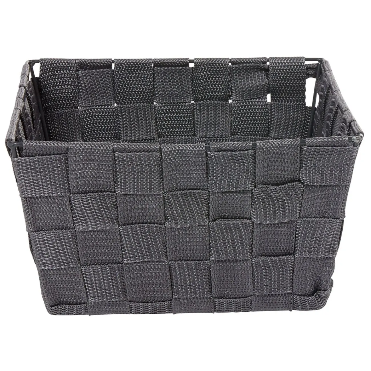 Panière carrée en polyester tressé gris, idéal pour le rangement dans la salle de bain.
