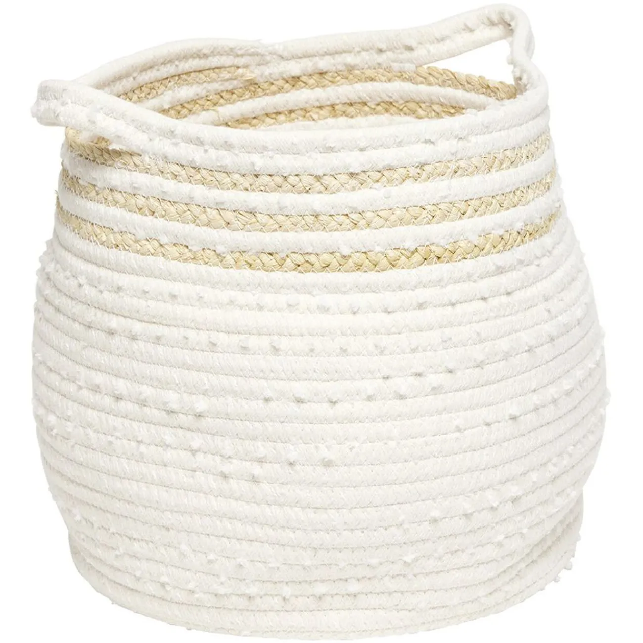 Panière en jute et coton blanc avec anses.