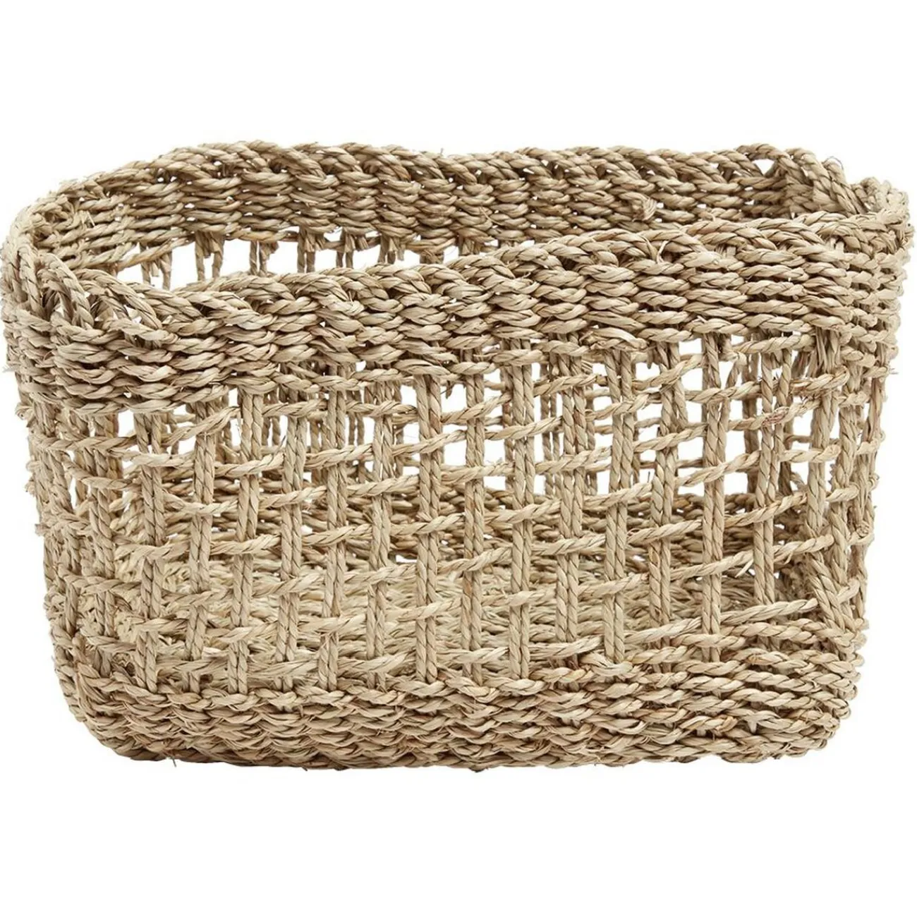 Panière petit modèle en jacinthe d’eau tressée couleur naturelle.