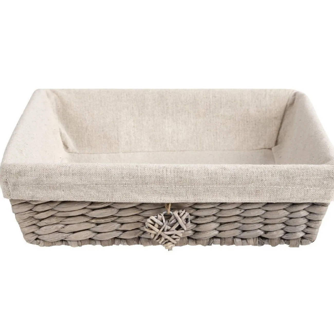 Panière en osier naturel carrée. Dim : 25 x 25 xH7 cm. Intérieur tissu beige.