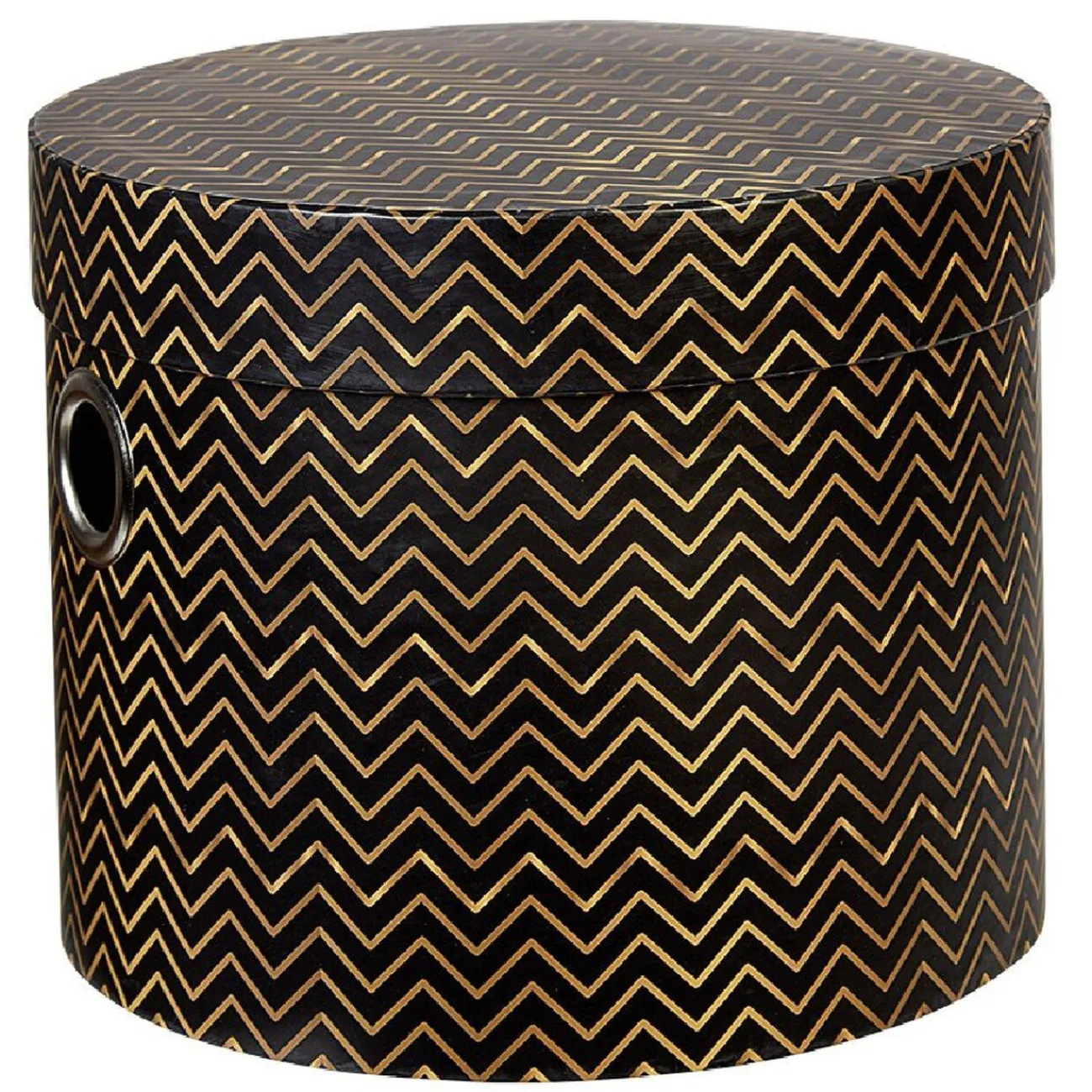Lot de 3 panières rondes en polyester avec couvercle de couleur marron au motif zig-zag doré.