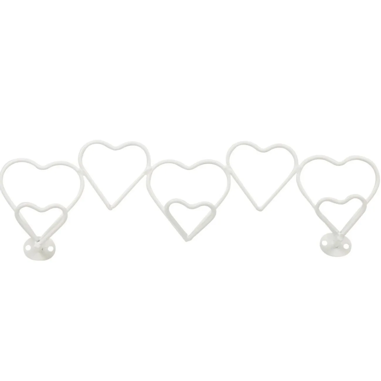 Patère coeur métal blanc, dim.49 x 7 x 15 cm