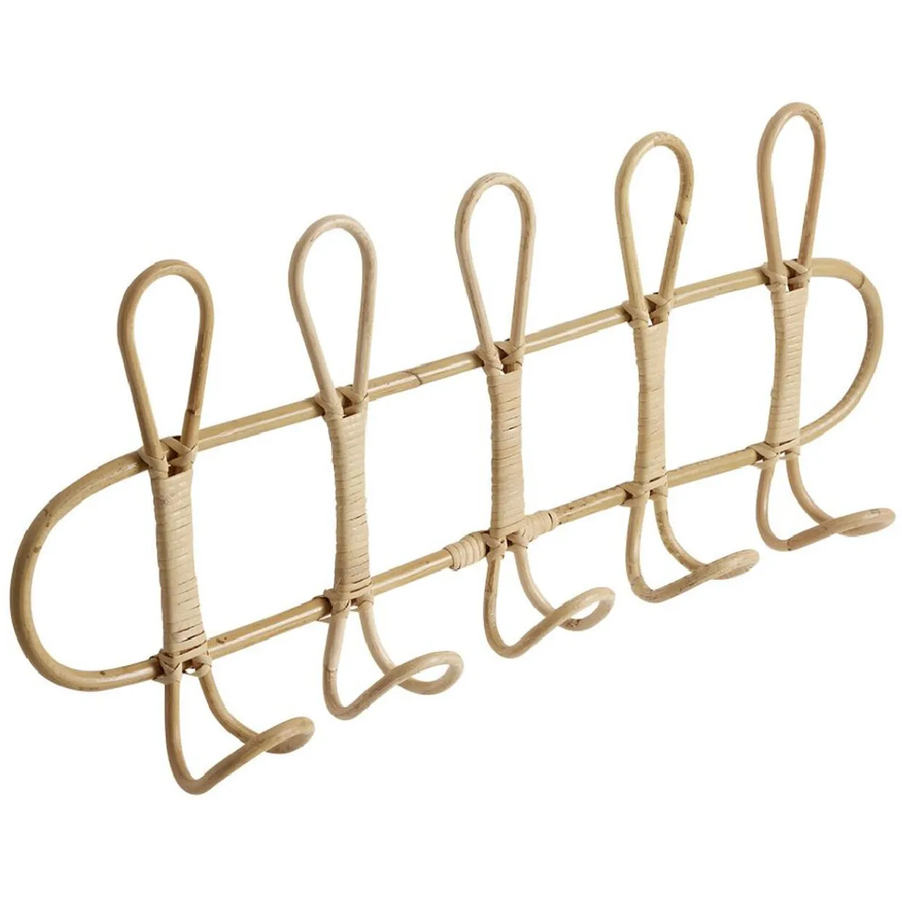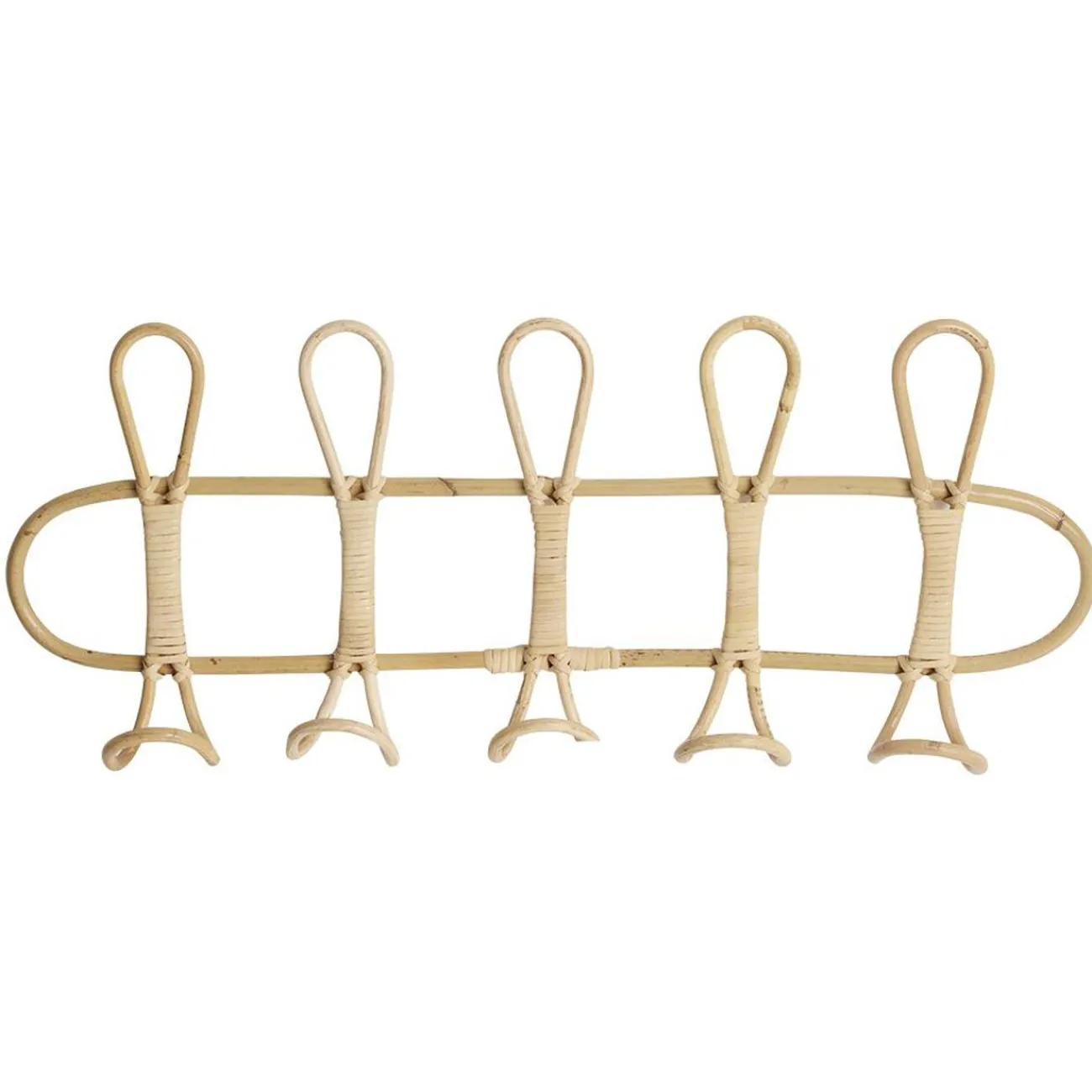 Cette patère en rotin composée de 5 crochets sera très pratique pour suspendre les vêtements et accessoires dans l’entrée, le couloir ou dans une chambre.