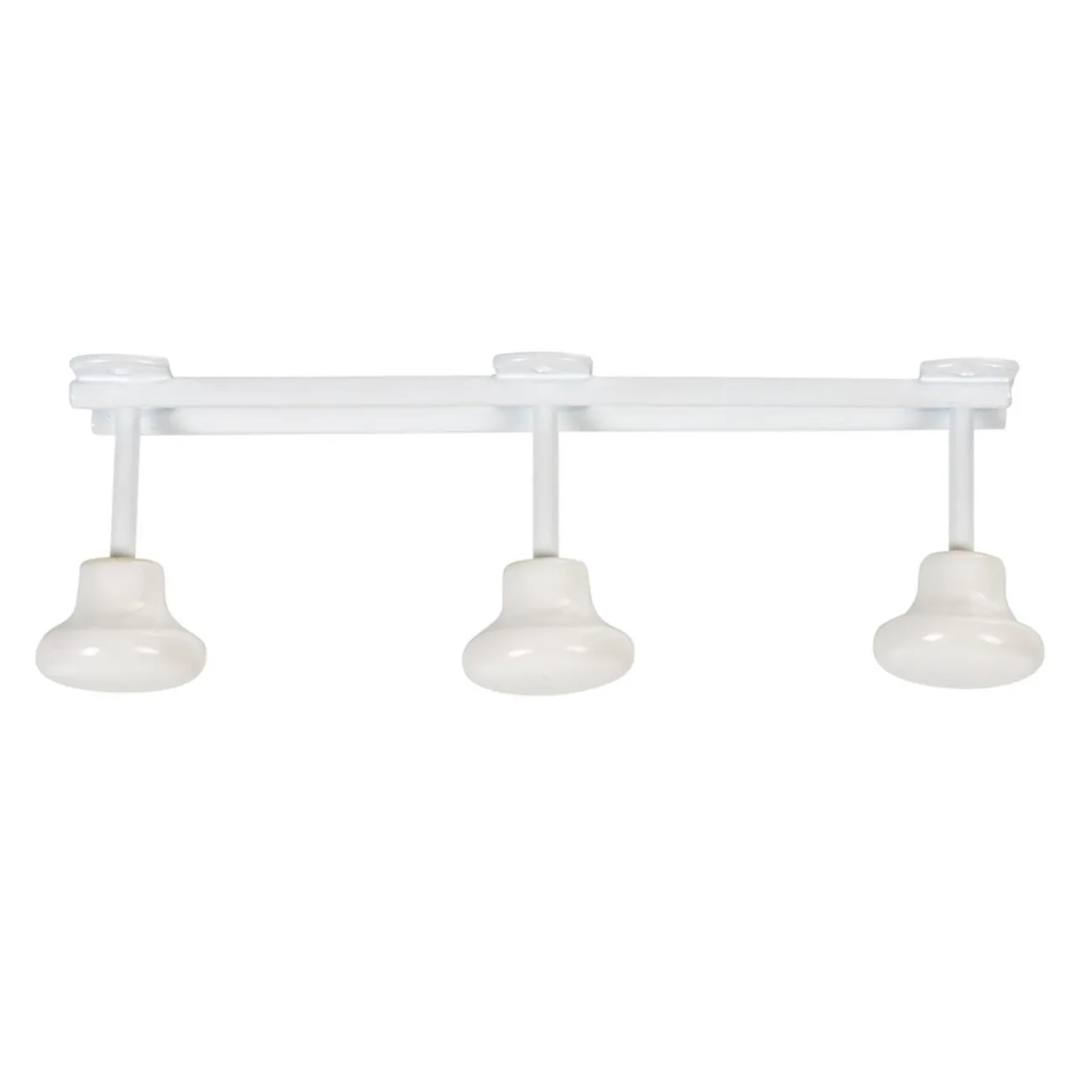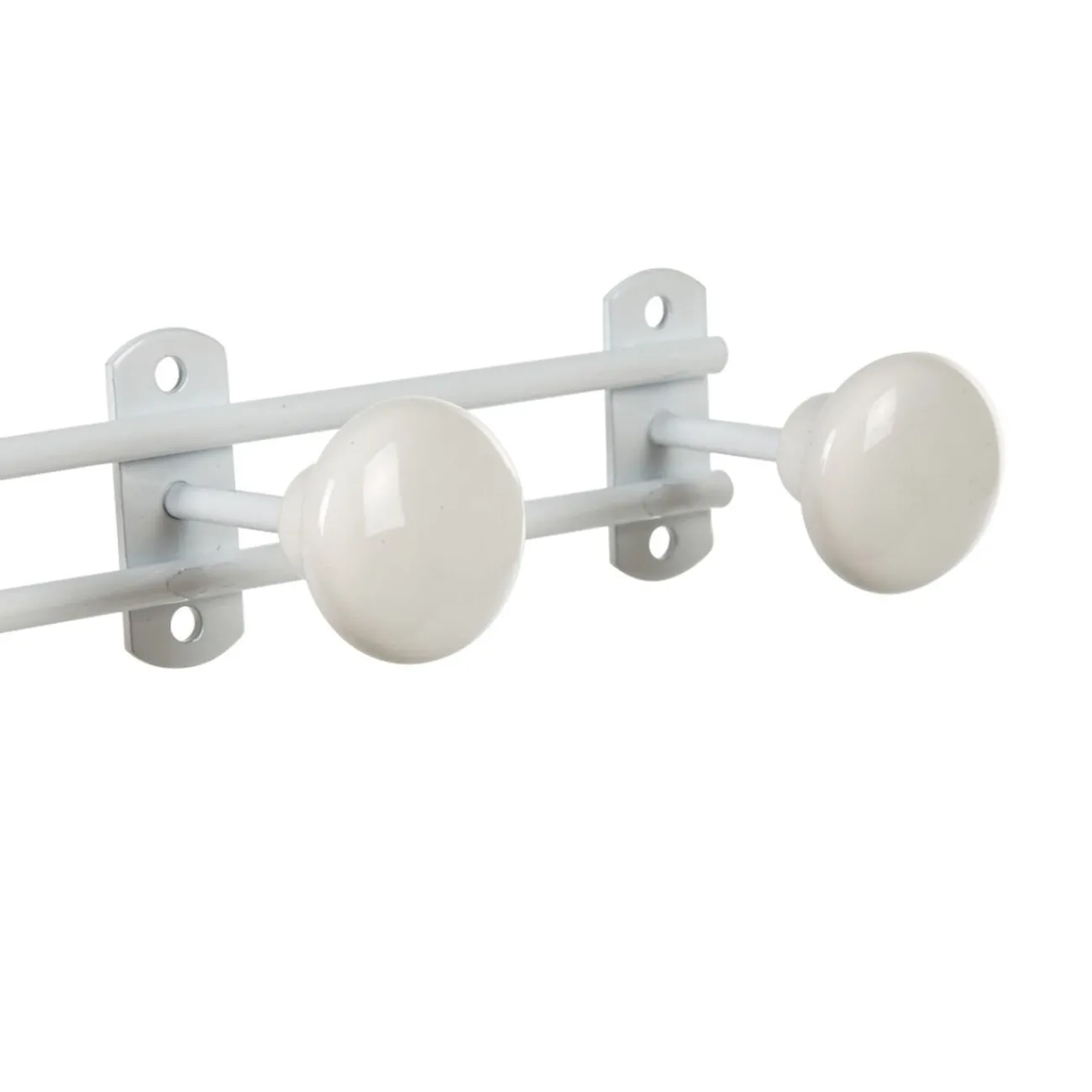 Patère murale en métal blanc et doté de 3 crochets en forme de boule. Discrète et très pratique pour suspendre vos affaires dans l’entrée ou d’autres pièces de votre intérieur.