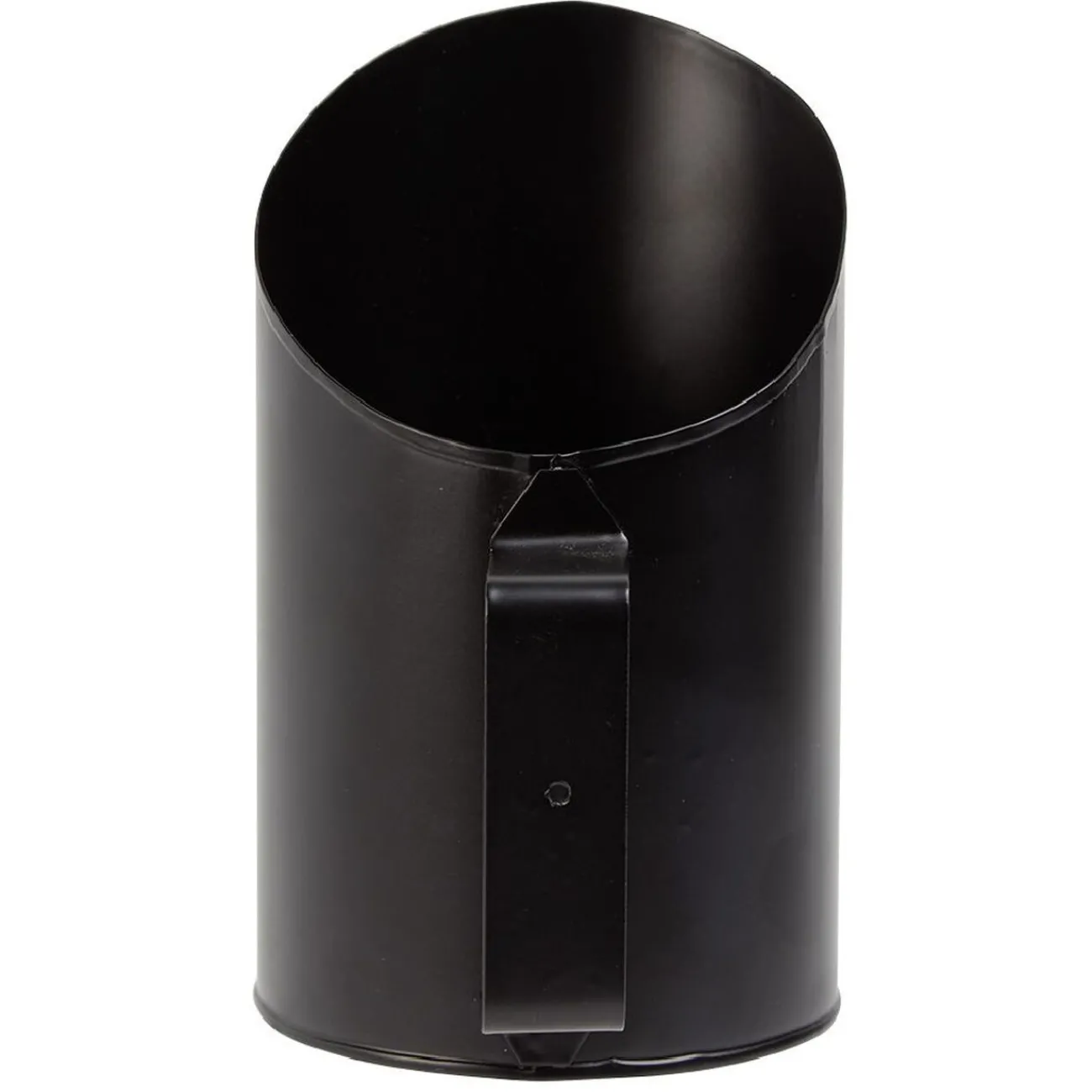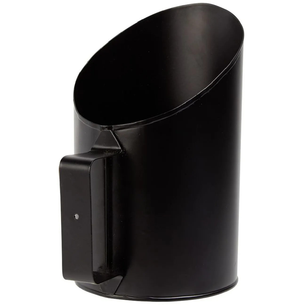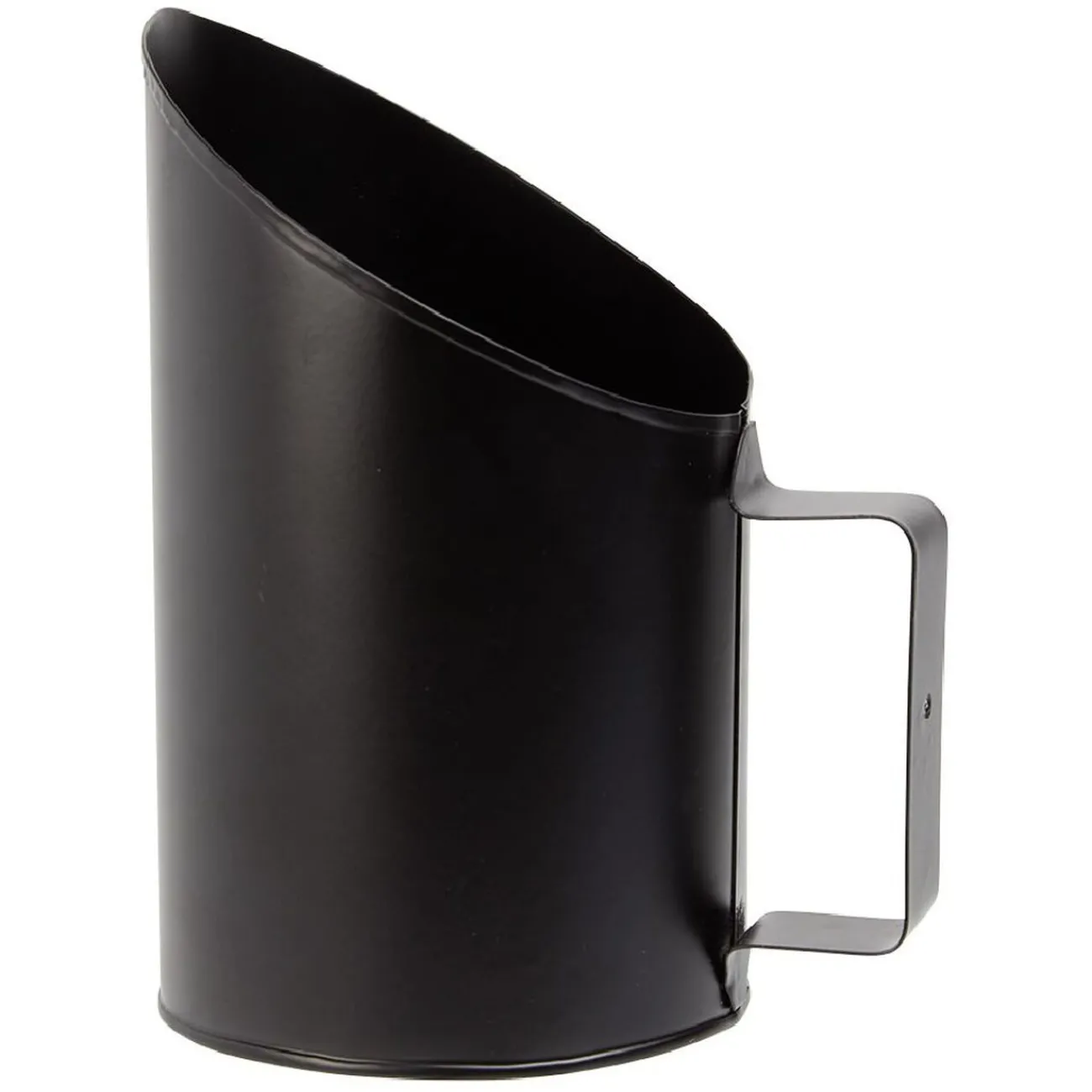 Pelle en acier noir pour le remplissage des pellets ou granulées de bois dans le réservoir du poêle.