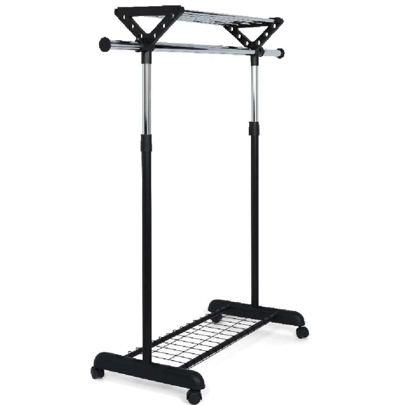 Portant vêtements à roulettes noir et gris, Dim. 86/134x44xh. 103/169 cm,métal et plastique.