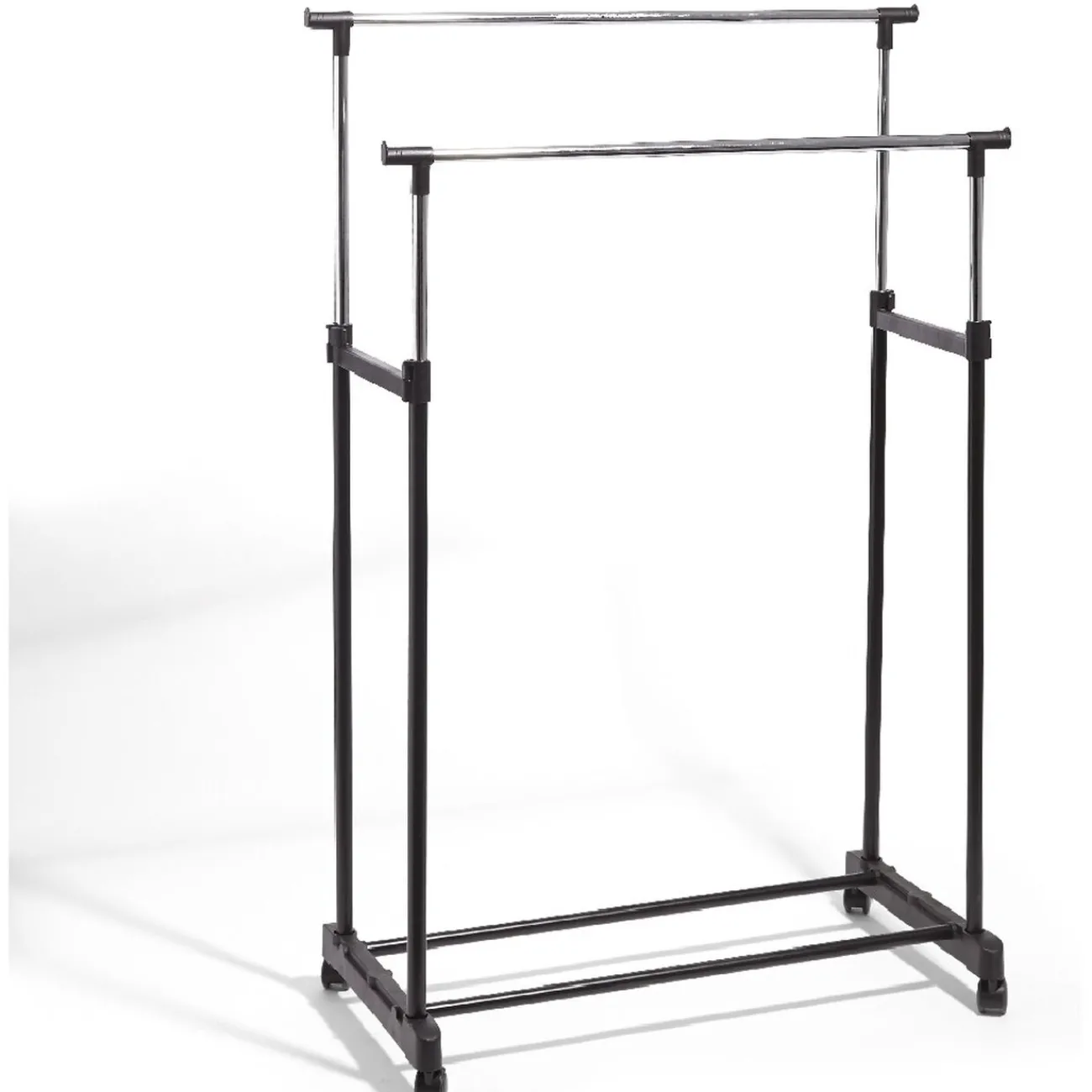 Portant vêtements double noir à roulettes, dim. 80×41,5xh.95/165 cm, métal.