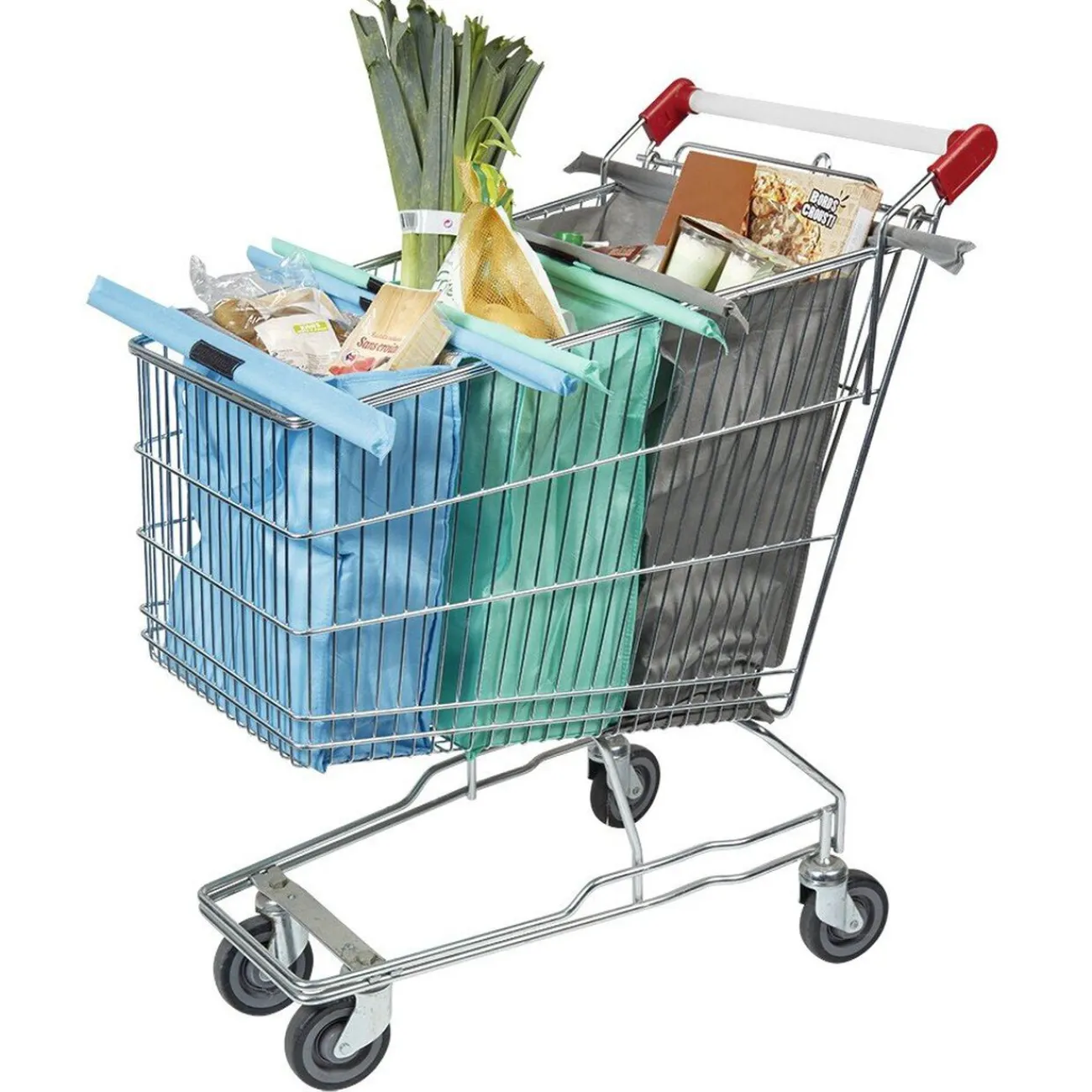 Lot de 3 sacs de courses, idéal à disposer dans votre chariot pour mieux organiser vos courses.