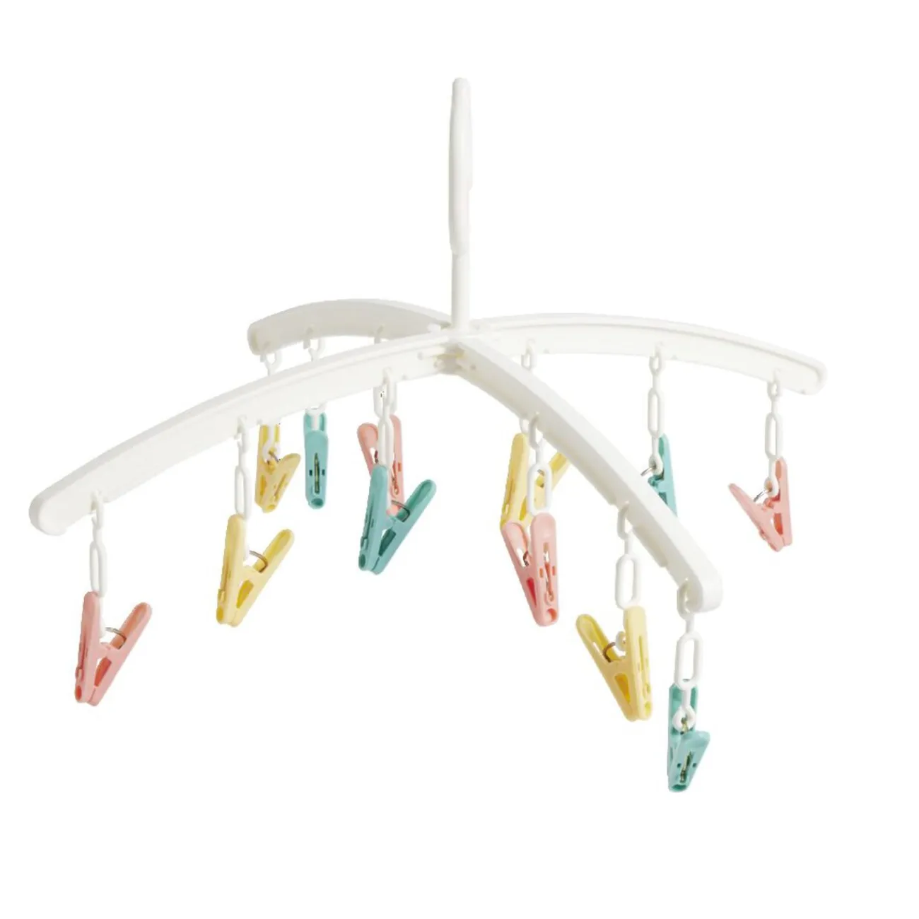 Ce cintre avec 12 pinces est un accessoire pratique et compact pour le séchage de vos vêtements.