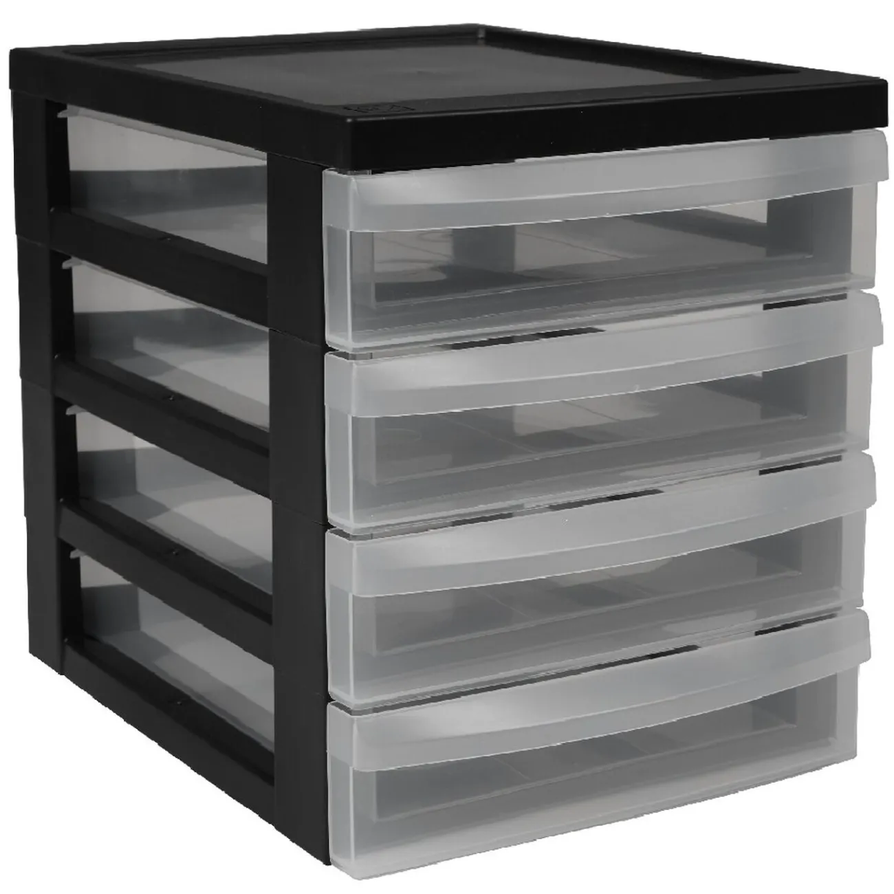 Organisez vos feuilles et cahiers grâce à cette tour de rangement noire avec 4 tiroirs transparents. Idéale pour y ranger vos fournitures A5.
