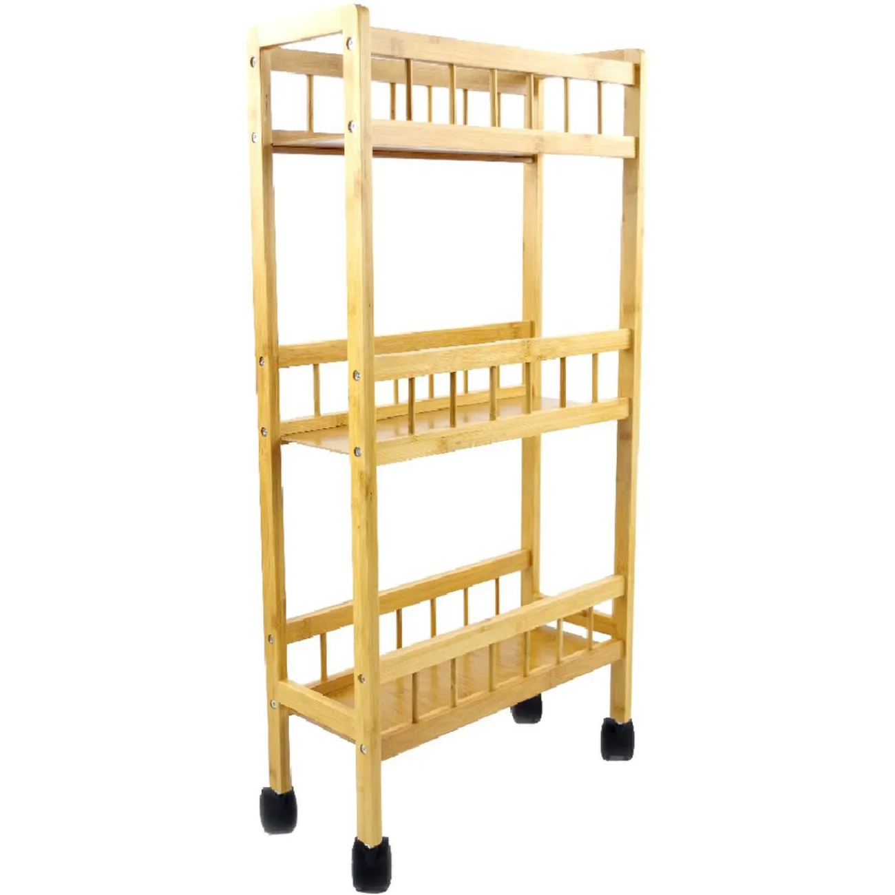 Resserre légumes en bambou, étroit avec 3 niveaux et à roulettes.