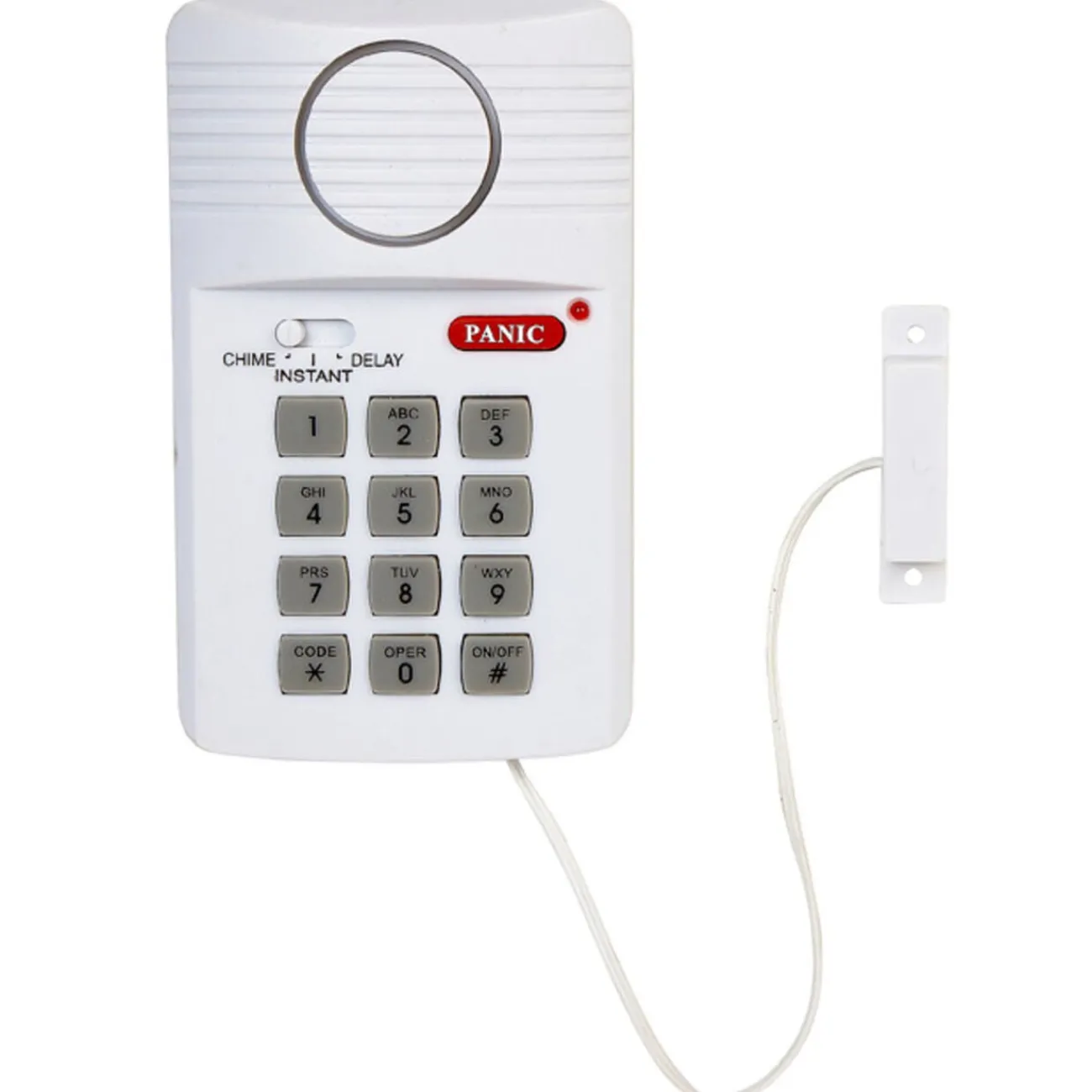 Alarme s’adaptant à toutes les portes et fenêtres. Elle peut accueillir jusqu’à 12 codes de sécurité différents servant à activer ou désactiver l’alarme. 5 minutes suffisent pour l’installer. Fonctionne avec 3 piles 1,5 V AA non fournies..