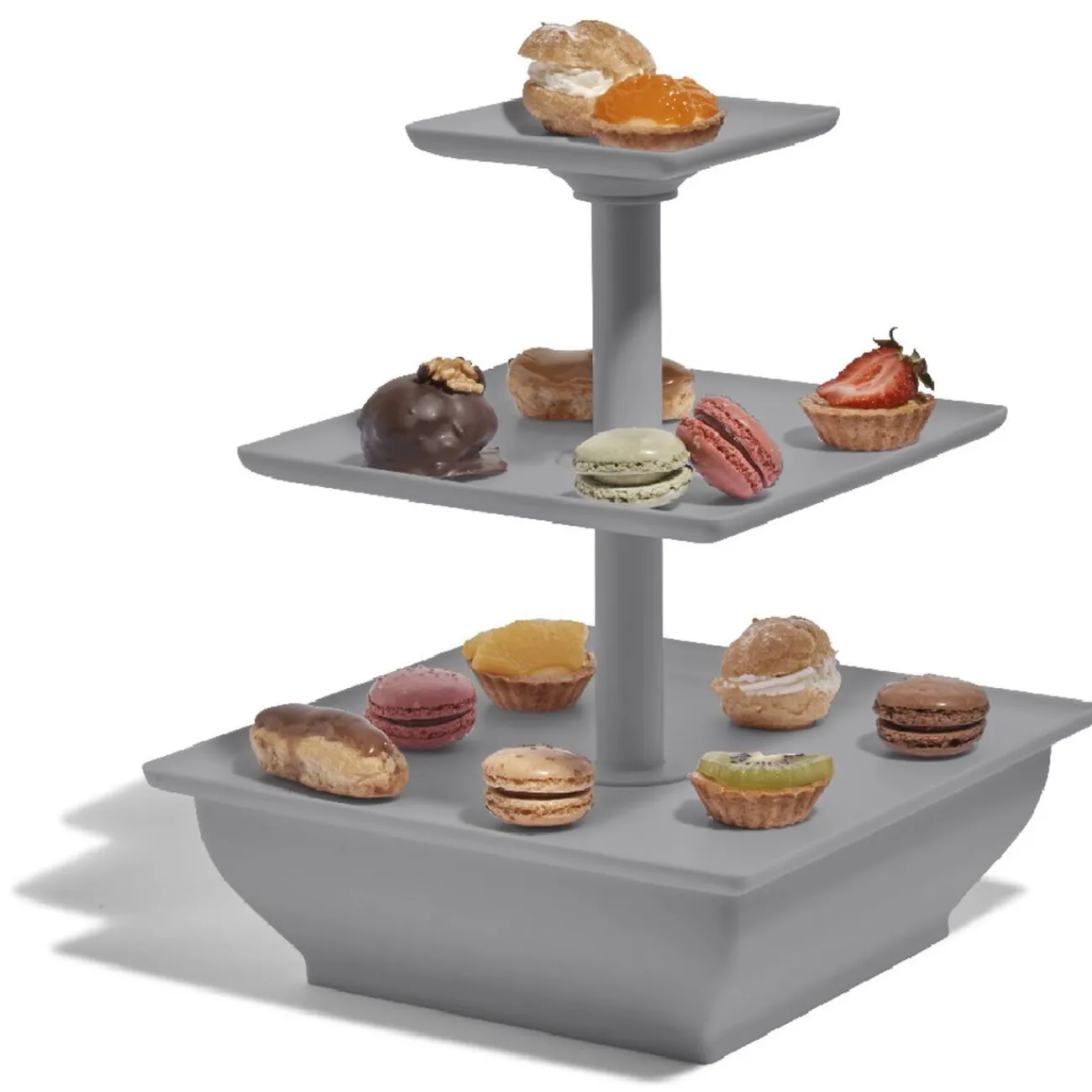 Serviteur gris anthracite à 3 niveaux, idéal pour présenter l’apéritif ou le dessert.