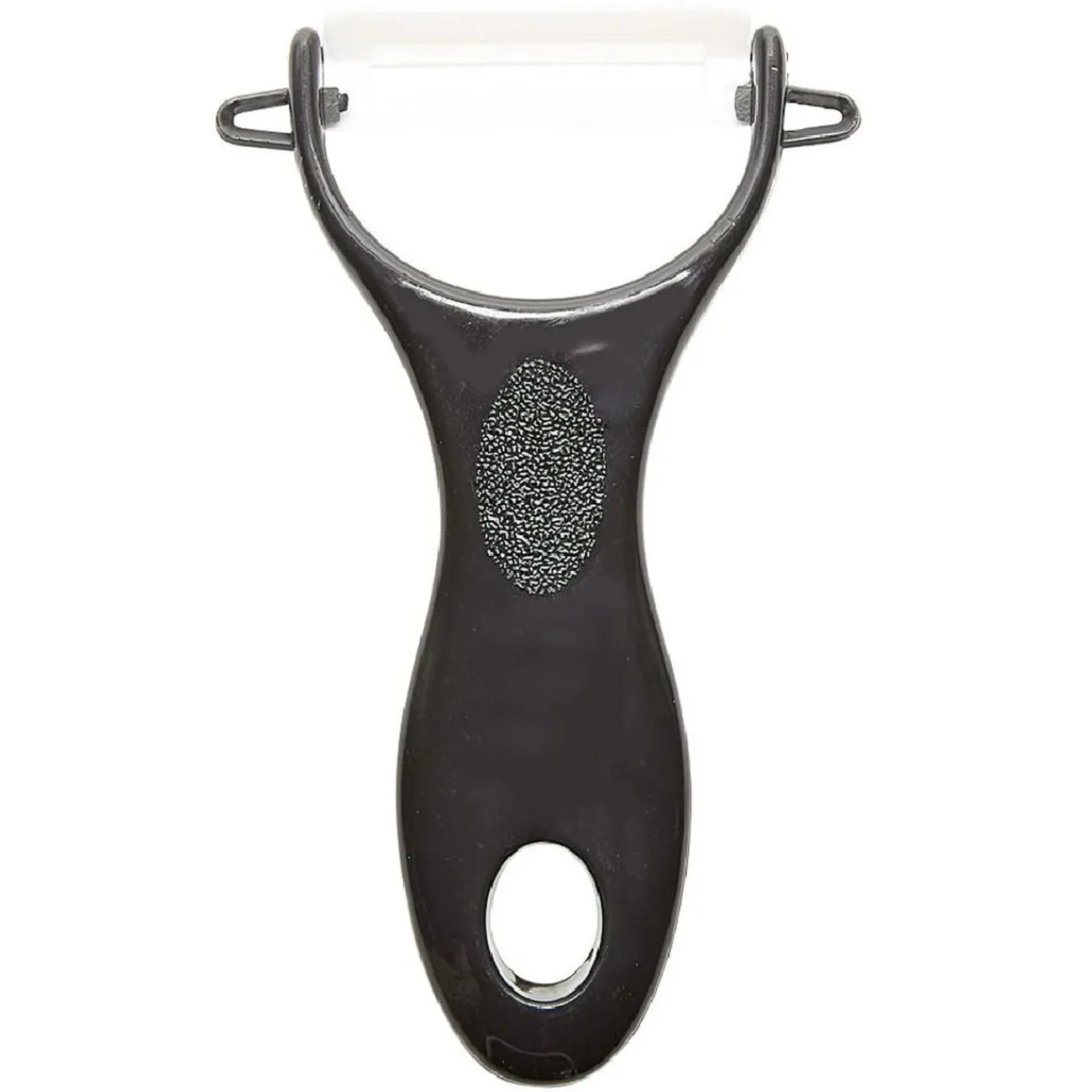 Set comprenant 1 éplucheur à légumes et 2 couteaux avec lames en céramique blanche.