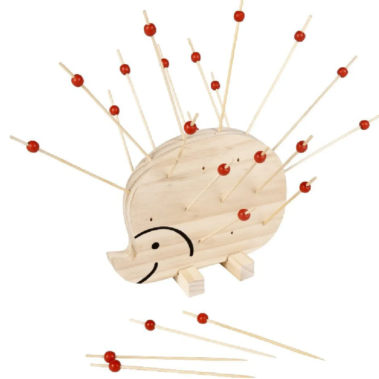 Set apéro en forme d’hérisson, dim. 22×17,5×8 cm, bambou. 27 pics inclus, L. 16 cm.