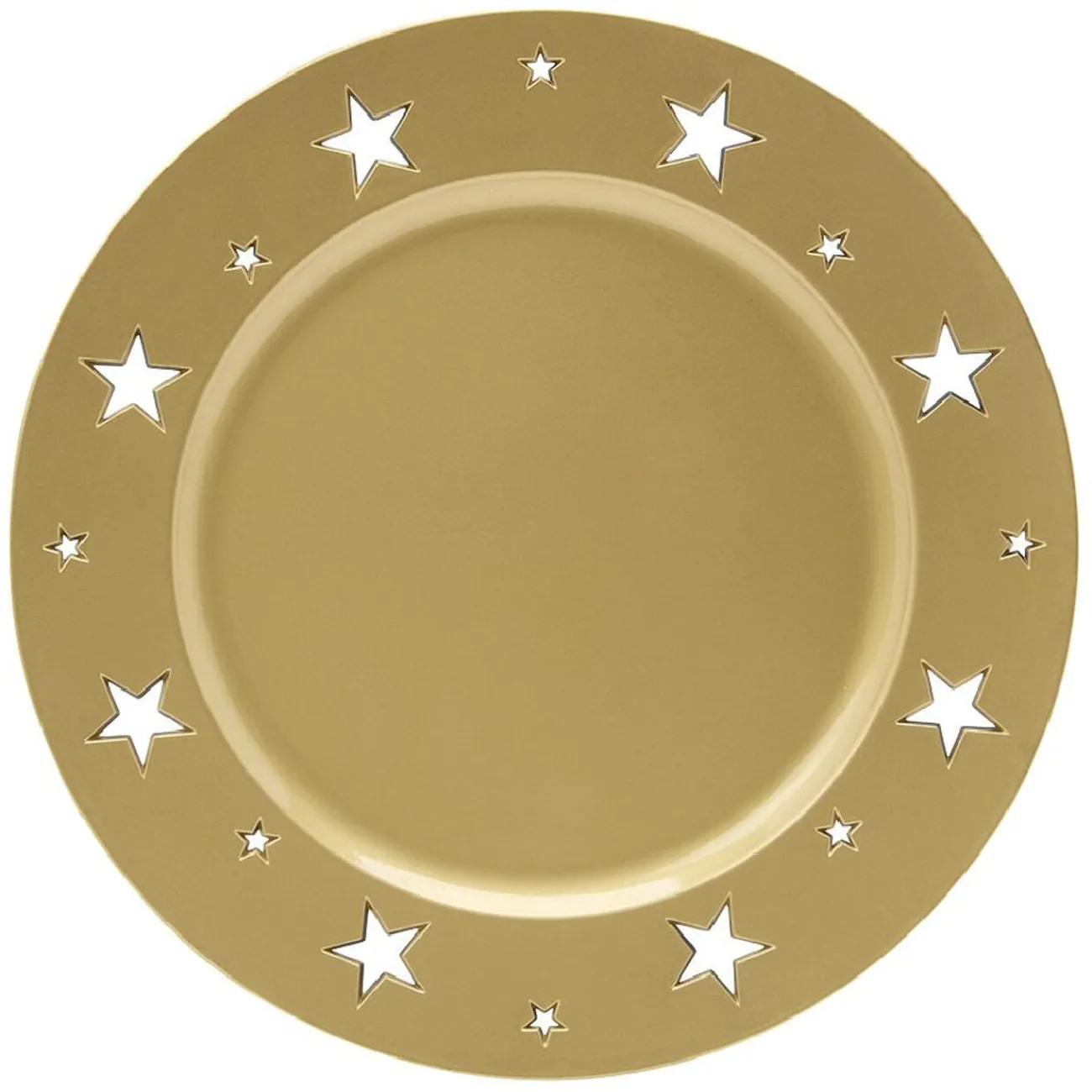 Une sous-assiette dorée à motif étoiles ajourées pour apporter une touche chic et festive à votre table de réveillon.