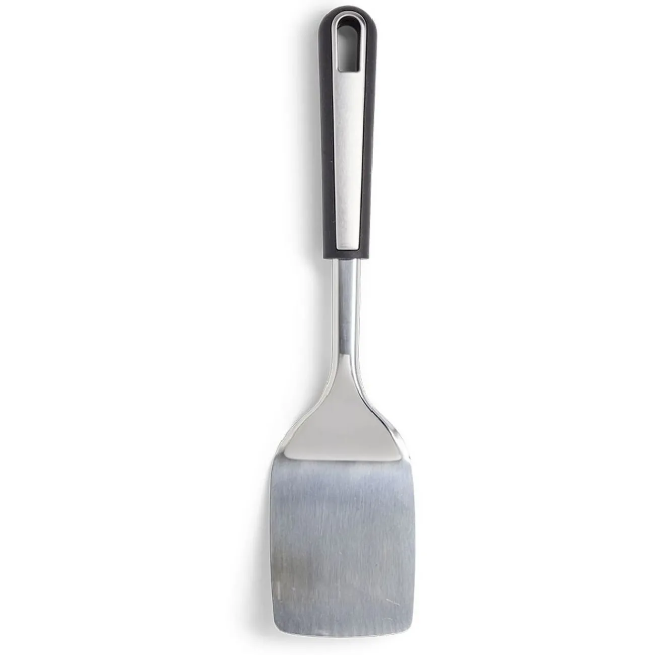 Cette spatule en inox avec manche en plastique noir vous servira aussi bien pour retourner des aliments à la cuisson que pour racler les bords et fonds de plat ou encore pour mélanger et répartir de la pâte. Design et pratique, elle est dotée d’un trou de suspension pour l’avoir sur un crochet toujours à portée de main !